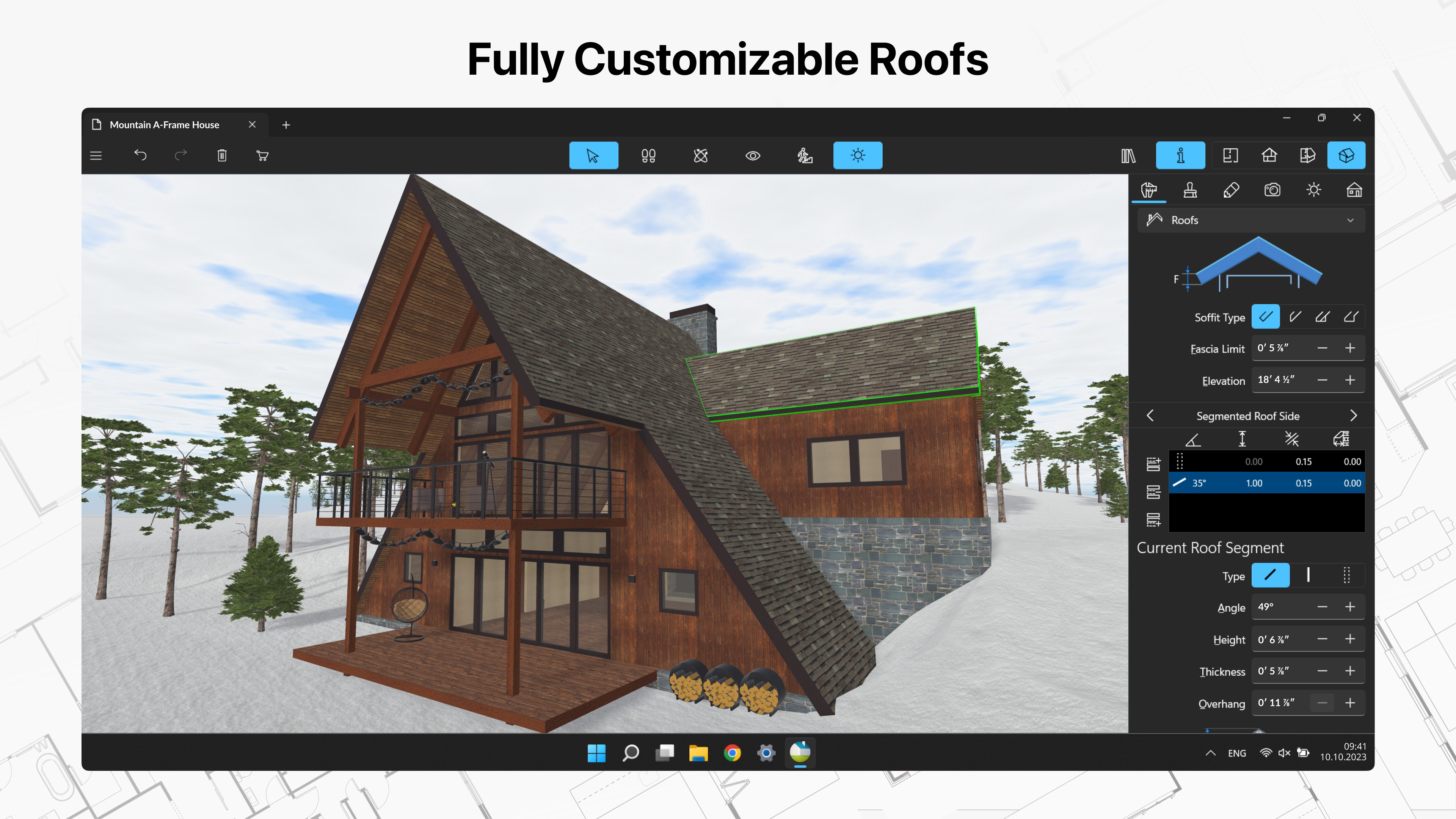 • Work with the customizable roof, create corner windows and complex openings;