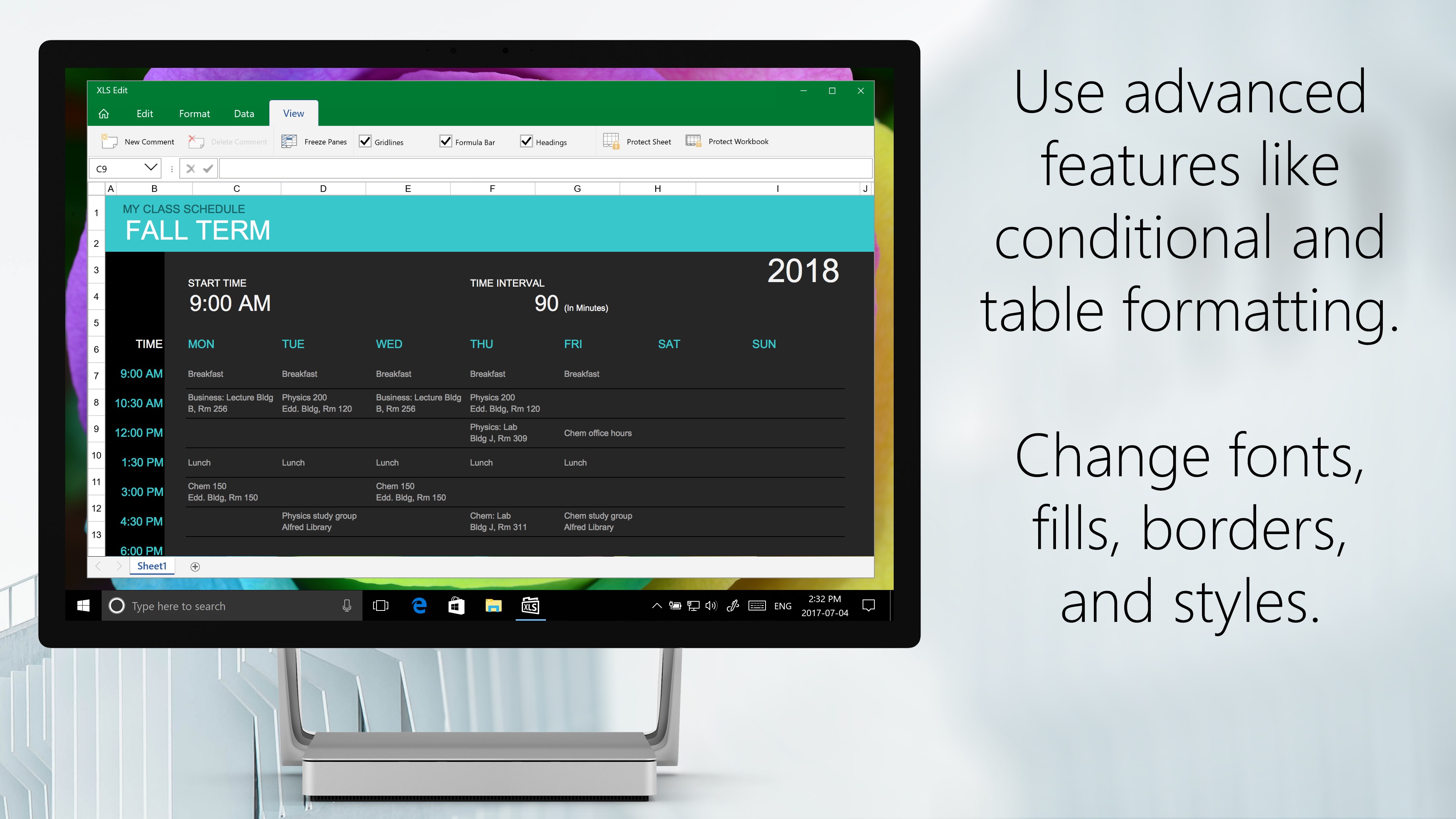 Opens any XLS or XLSX spreadsheetEdit sheets created by Excel and other programsUse advanced features like table formatting, conditional formatting, functions, and formulasPowerful, small app