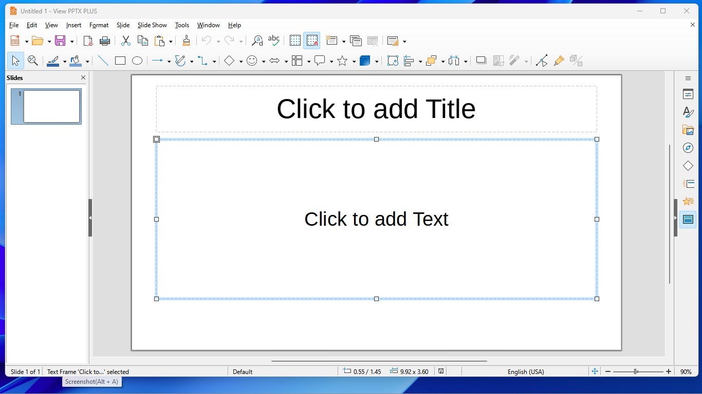 With View PPTX PLUS, you can not only create and edit PowerPoint presentation documents (.pptx and .ppt) directly, but also open many more common presentation document formats (.odp, .sxi, .uop, .sdd and etc.).