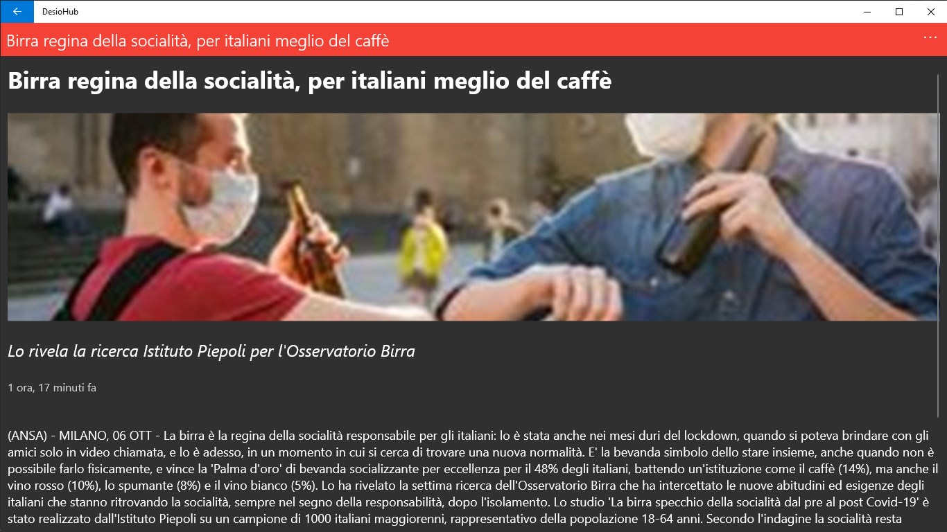 Infine, un link nella barra in cima al display consente il passaggio diretto alla app Desio Finance, qualora questa sia installata sul device.