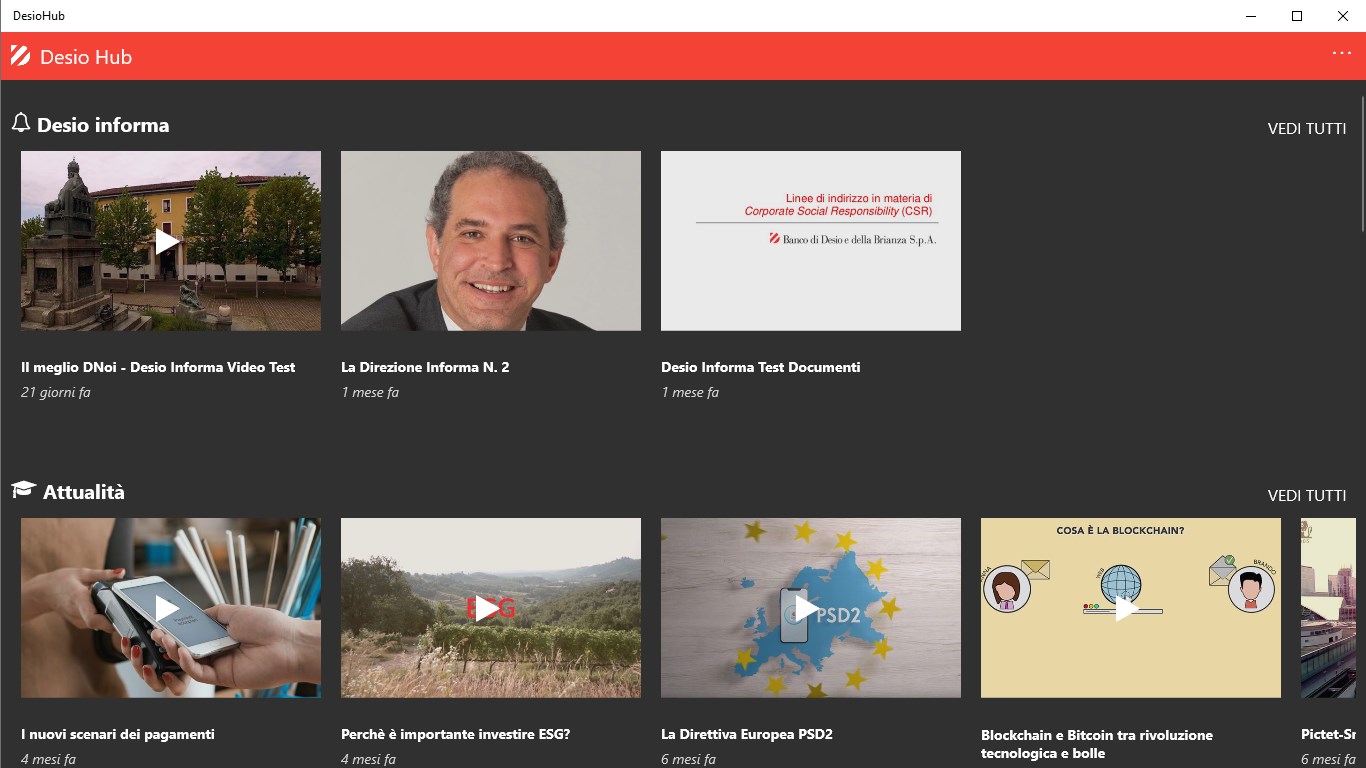 Desio Hub può essere utilizzata per distribuire news, video e documenti agli utenti.