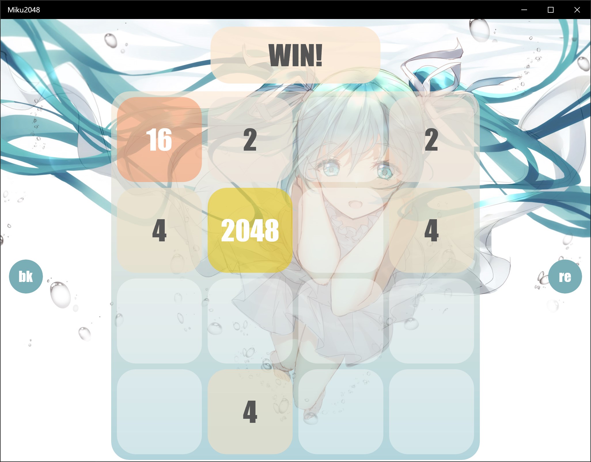Let's play 2048 with Hatsune Miku!~