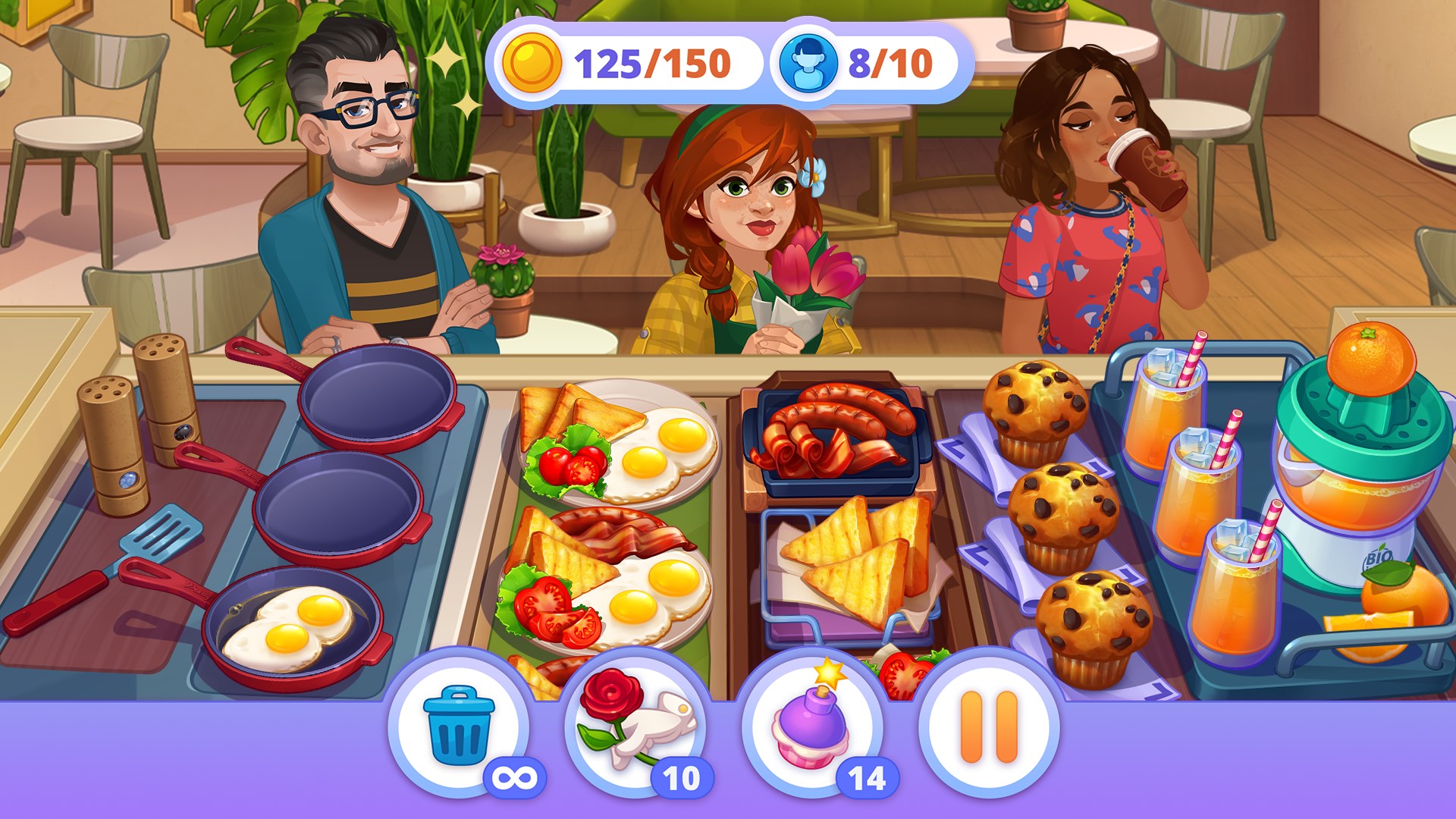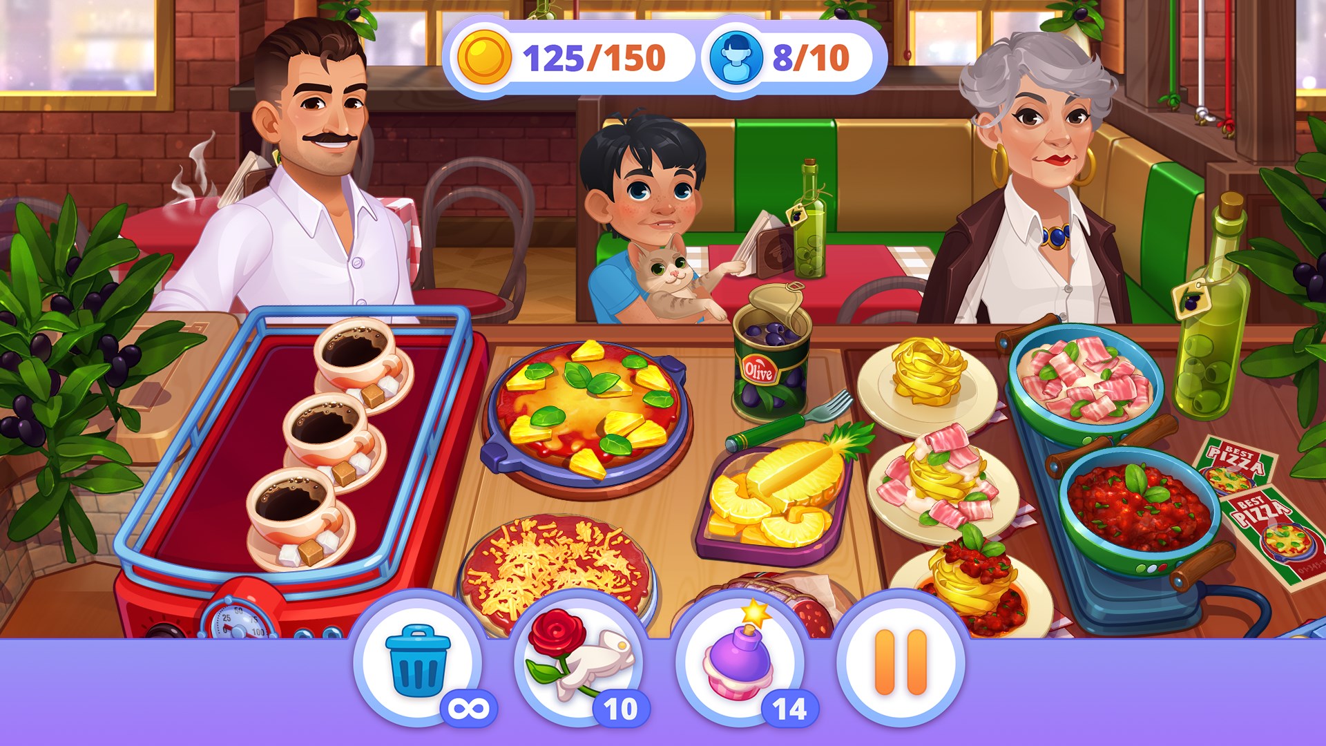 Engaging blend of casual gameplay and strategic time managementCook and serve a diverse range of dishes, including pizzas, burgers, and sweet treatsUpgrade your kitchen equipment for a superior cooking experiencePowerful boosters to enhance your gameplay and conquer challenging levels