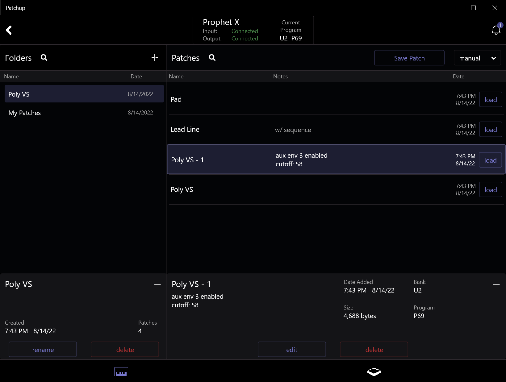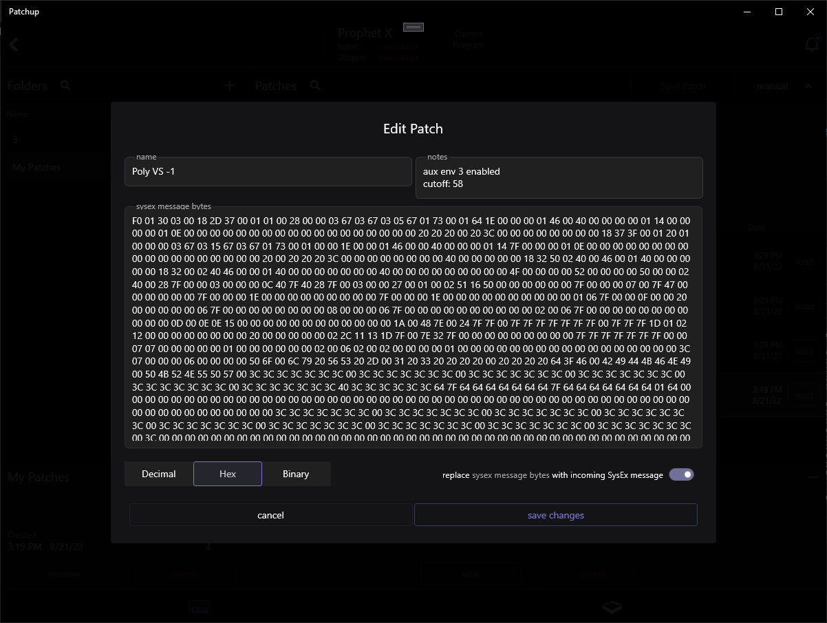 Patchup is an interface for managing your synth's patches via SysEx messages. Just connect your synth via USB or MIDI, create a folder, and begin saving and loading patches.