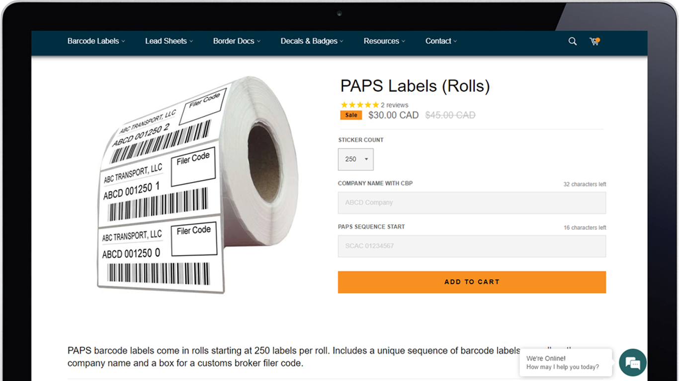 Order CBSA and CBP approved PARS and PAPS barcode labels, lead sheets, custom documents, and more. Delivered right to your door!