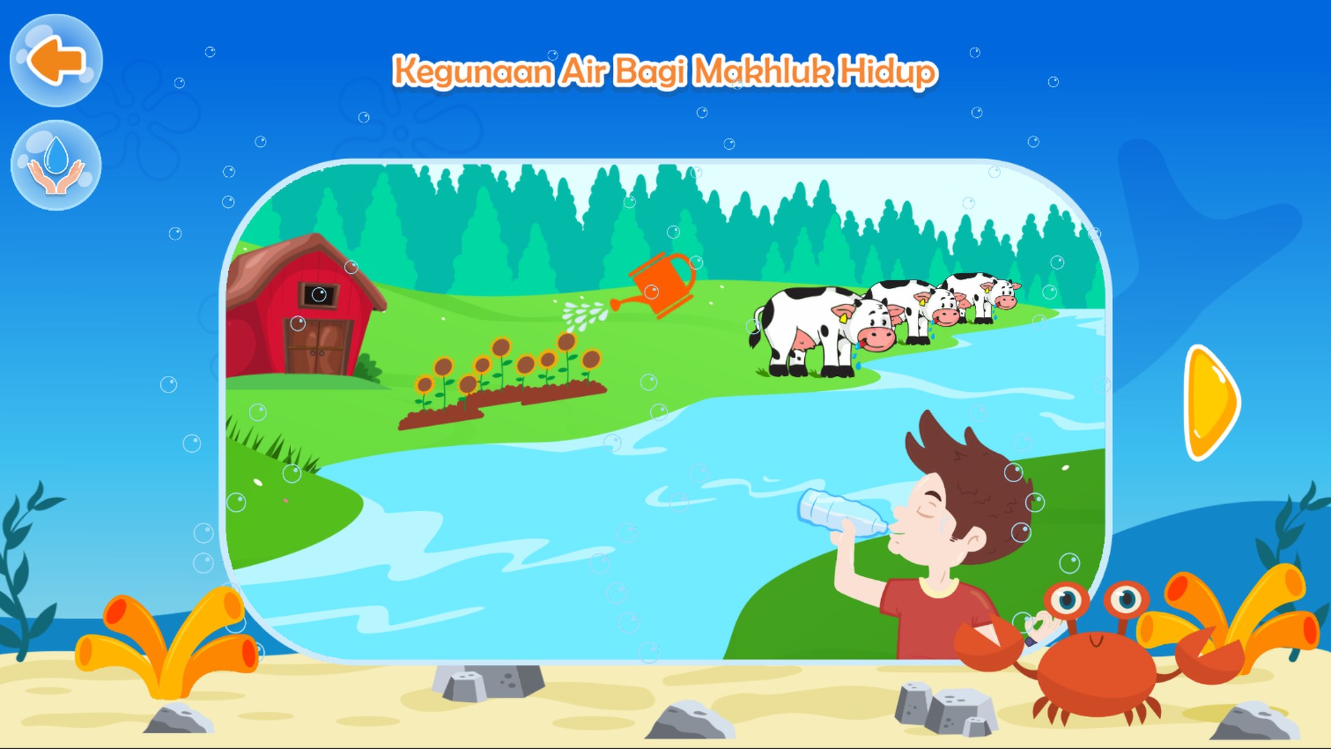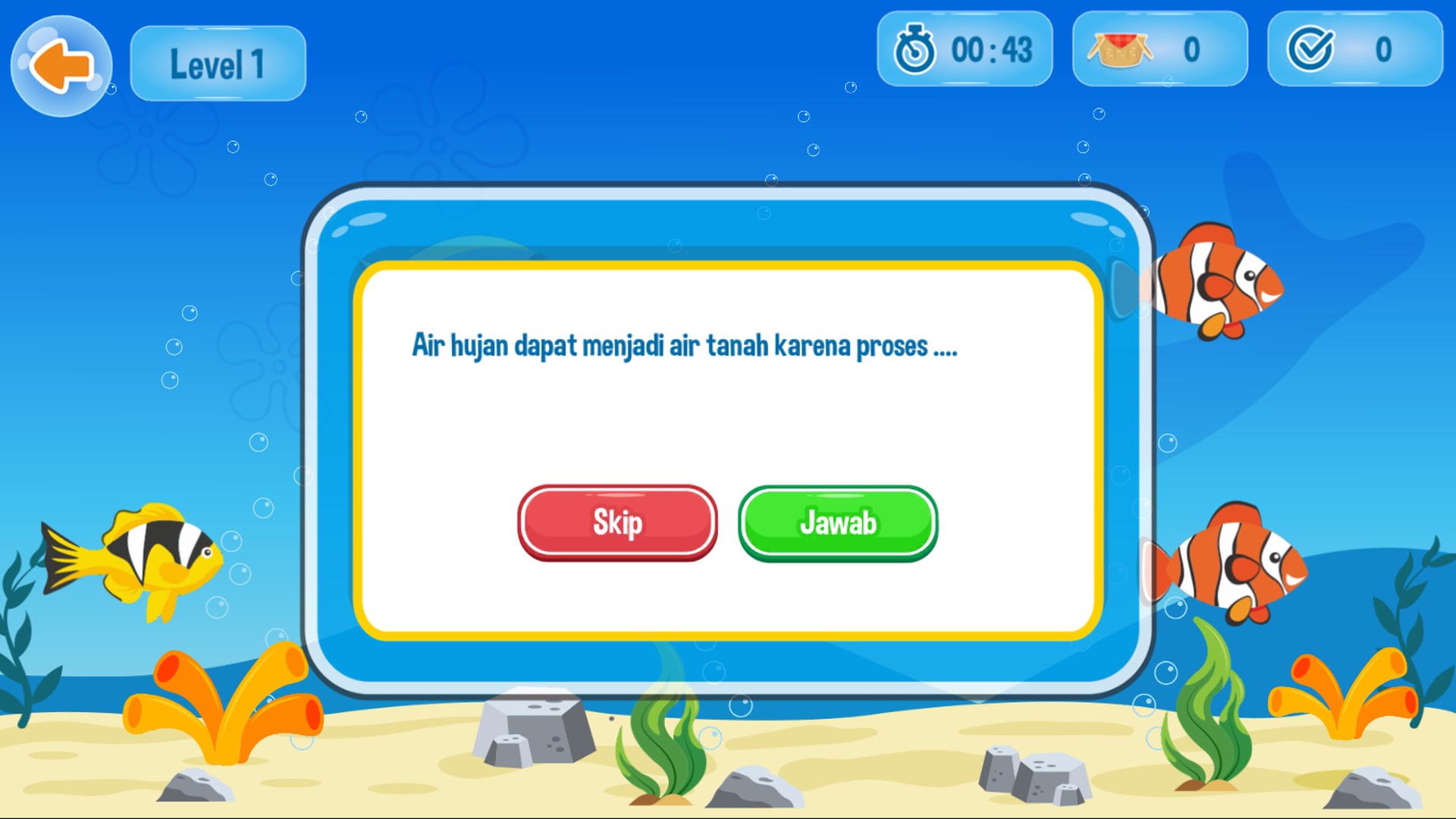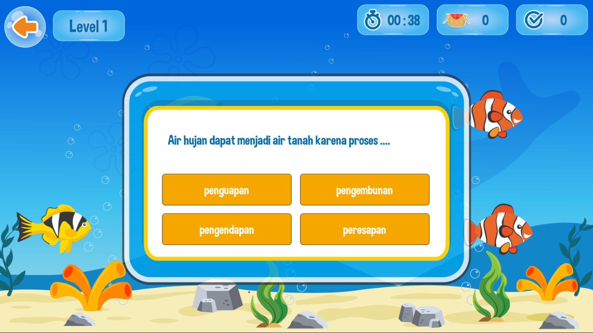 Di dalam aplikasi juga terdapat game edukasi tangkap ikan dengan kuis tentang siklus air.