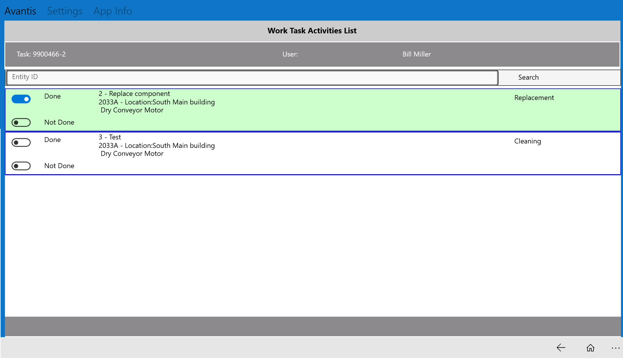 Mobile Maintenance solution enables the user to do the following: