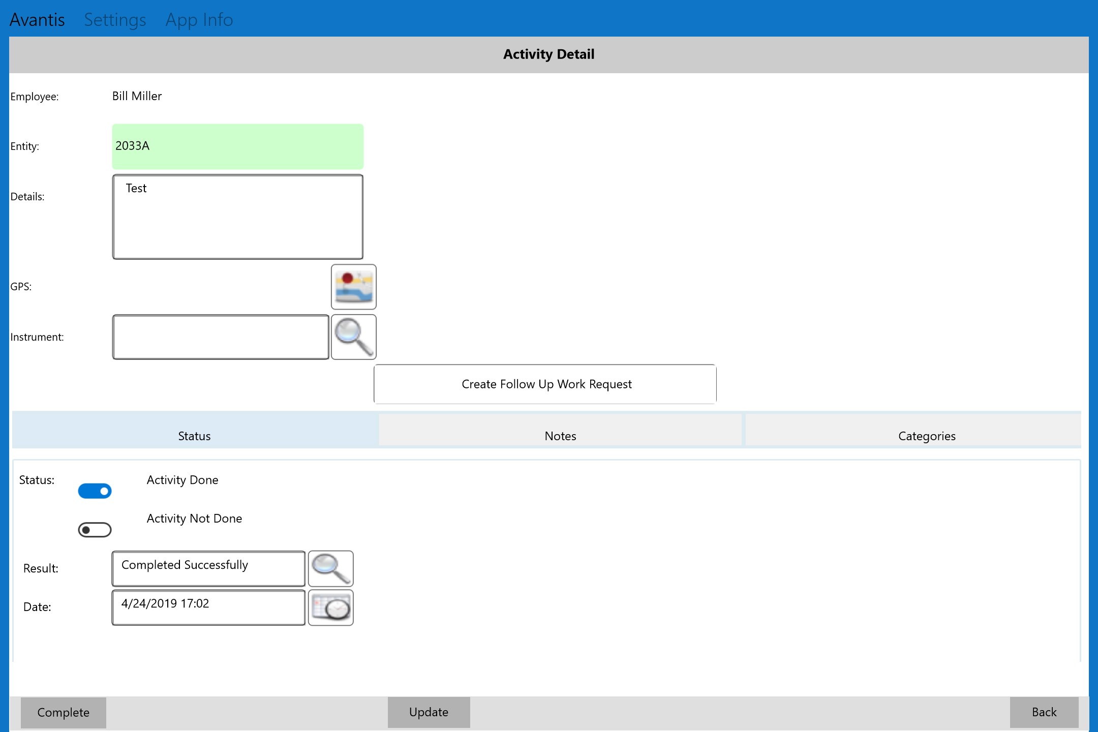 • Complete the work order activities