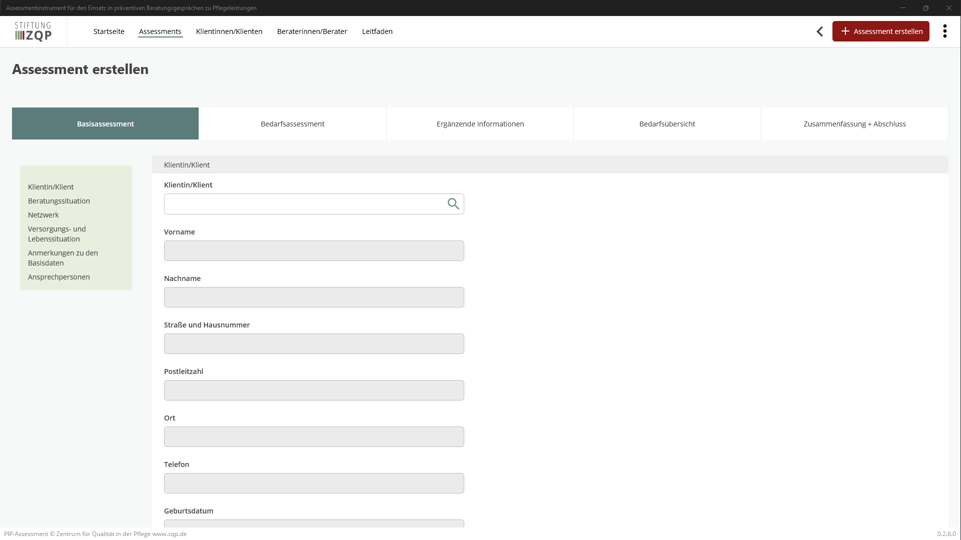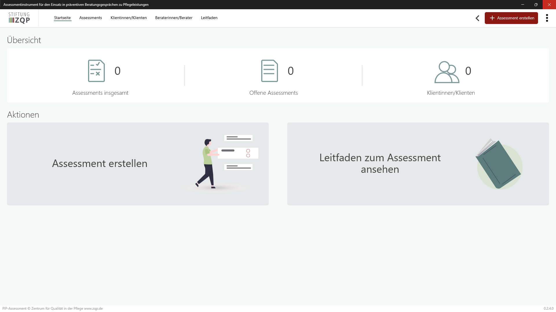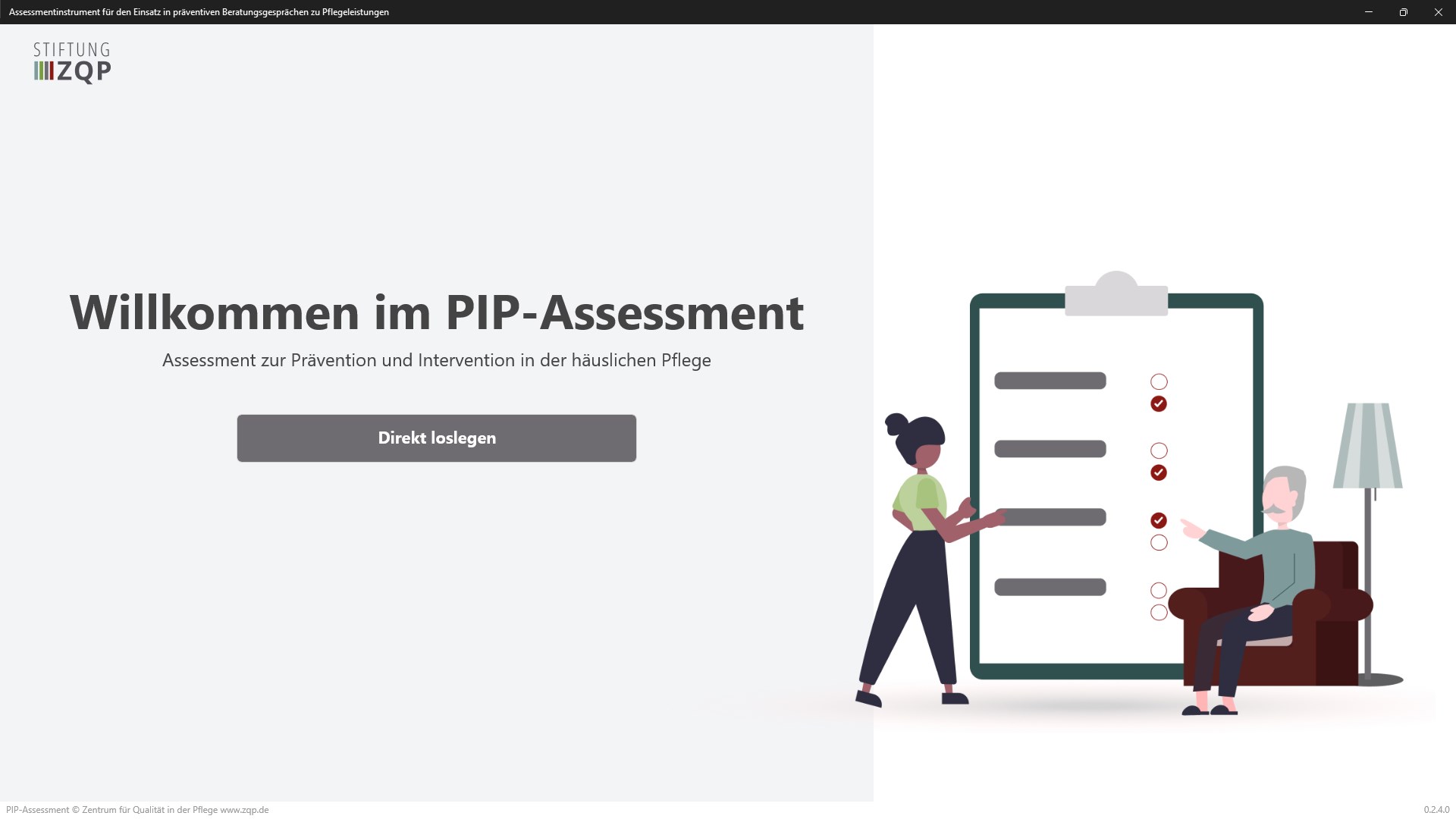 • Launch Assessment zur Prävention und Intervention in der häuslichen Pflege (PIP-Assessment) from your Start Menu or Apps List.
