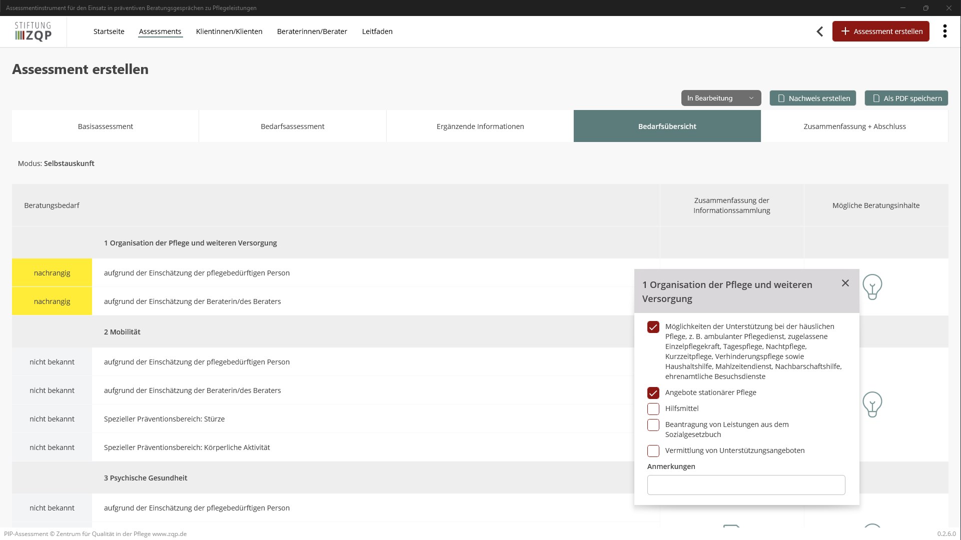 Strukturierung des BeratungsprozessesIdentifikation von pflegerelevanten Problem- und RisikobereichenPriorisierung von BeratungsbedarfenAusweisen von BeratungsvorschlägenDokumentation von BeratungErstellung eines Nachweises über einen Beratungsbesuch nach § 37 Abs. 3 SGB XI