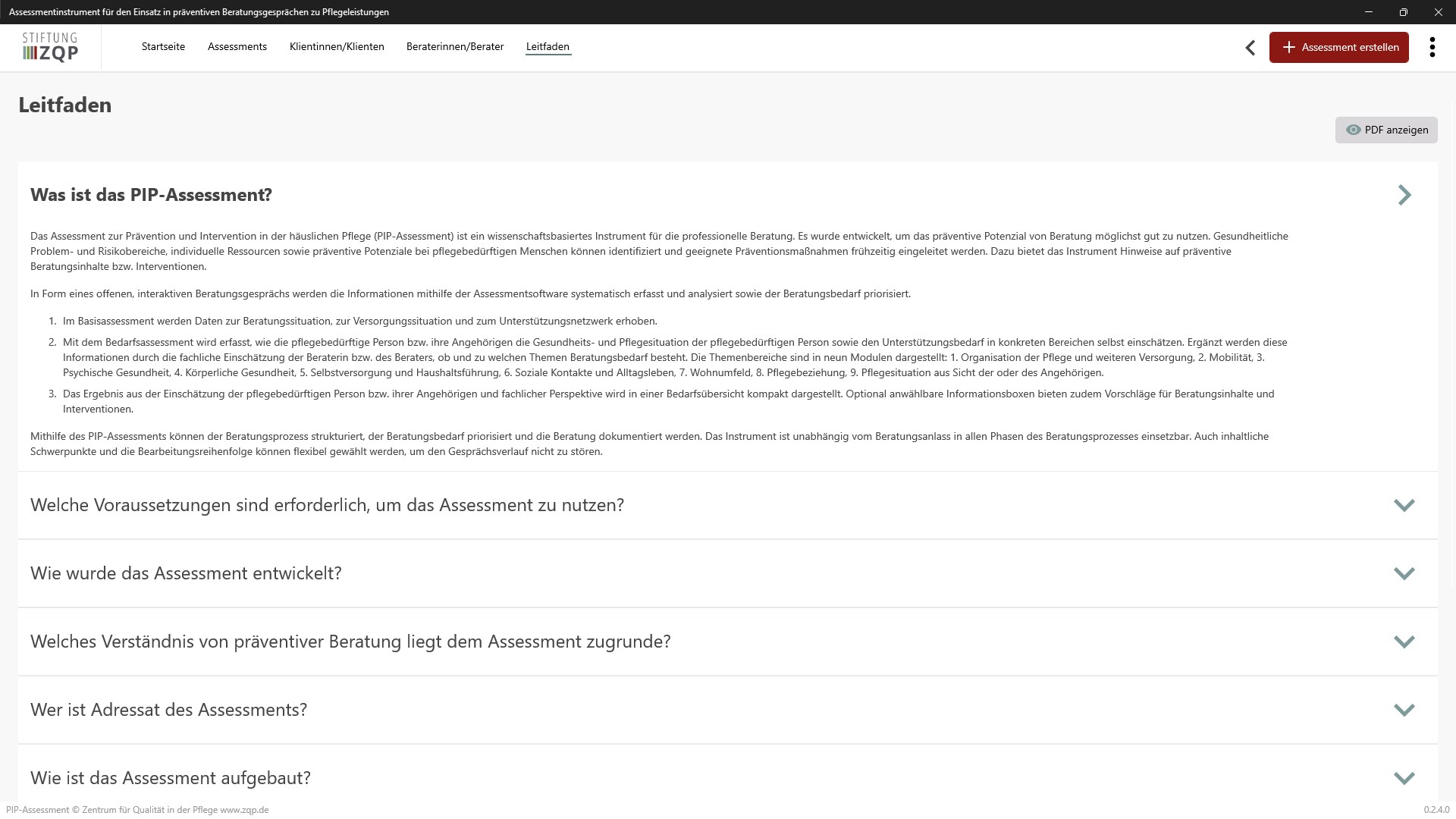 Assessment zur Prävention und Intervention in der häuslichen Pflege (PIP-Assessment) for PC Windows