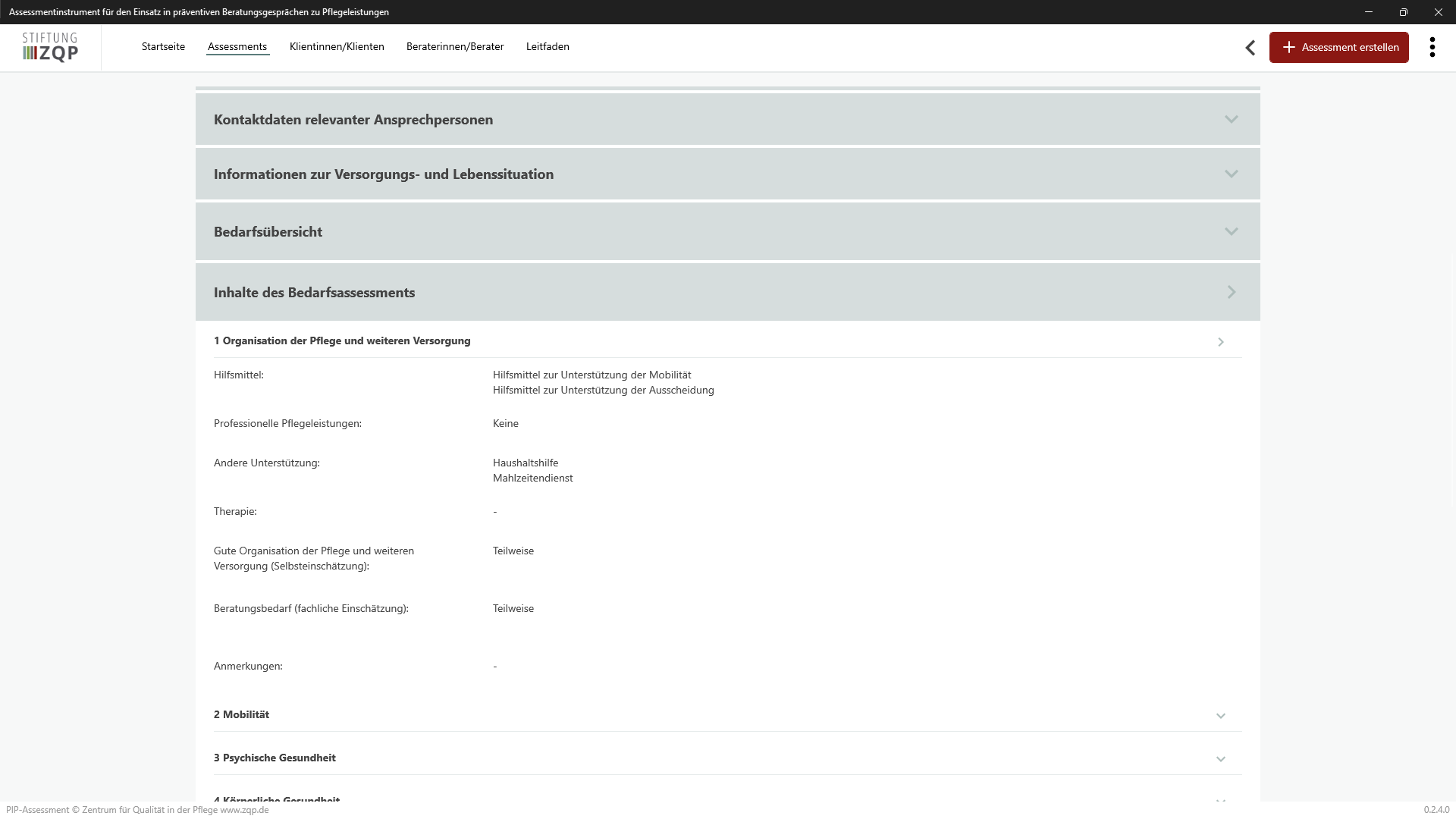 • Step 2: Search for Assessment zur Prävention und Intervention in der häuslichen Pflege (PIP-Assessment)
