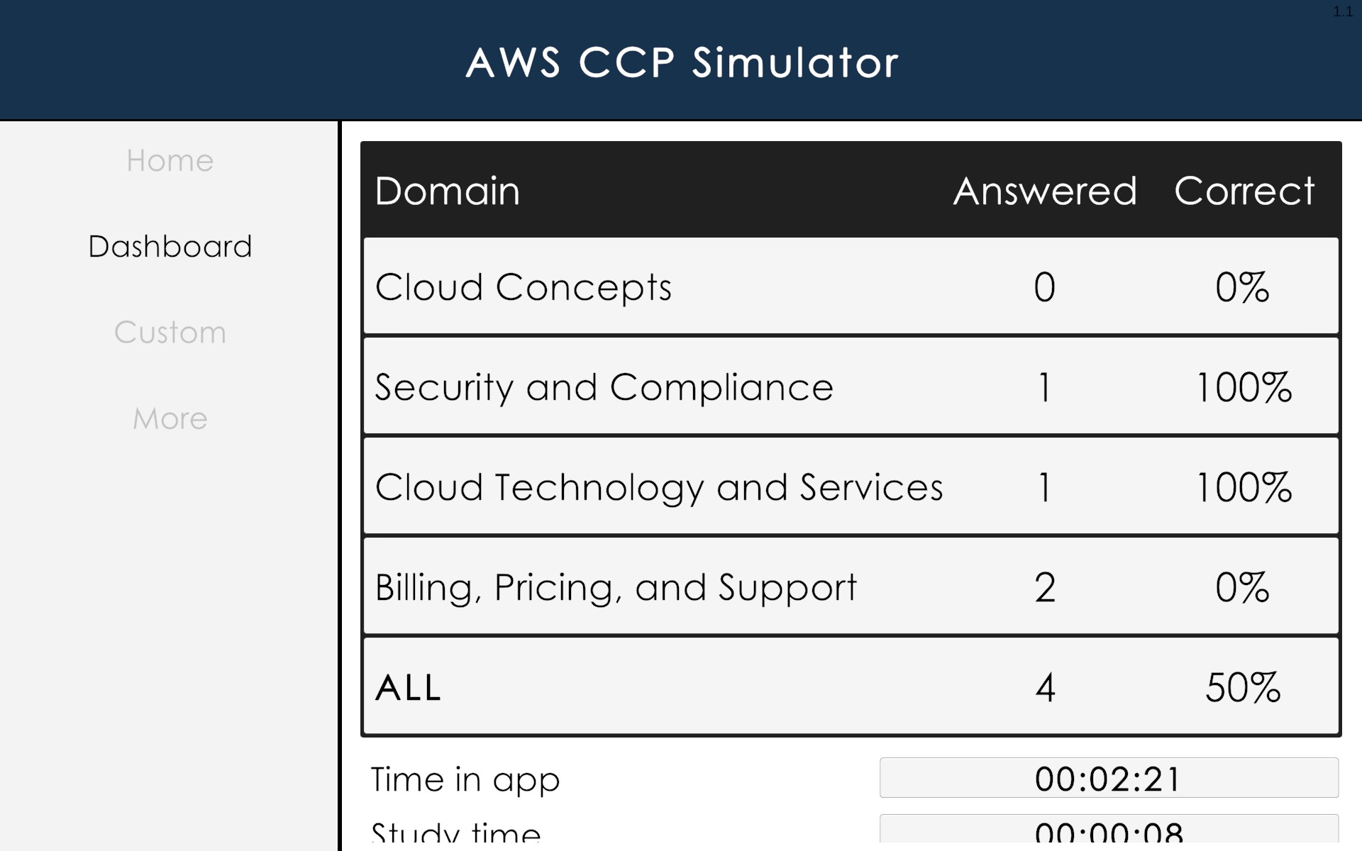 Track your progress including which domains you need to focus on, how many mock exams you've passed or failed, your total study time and much more.
