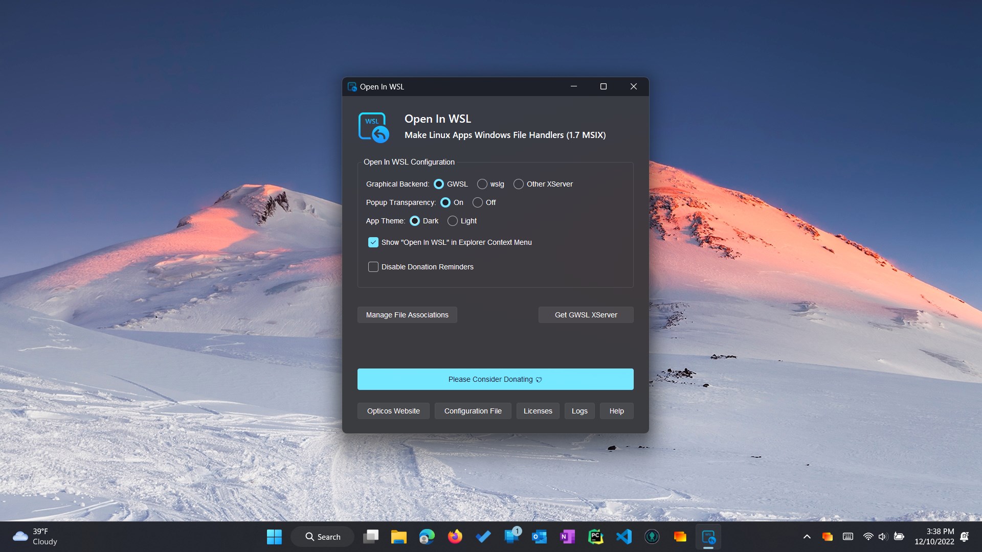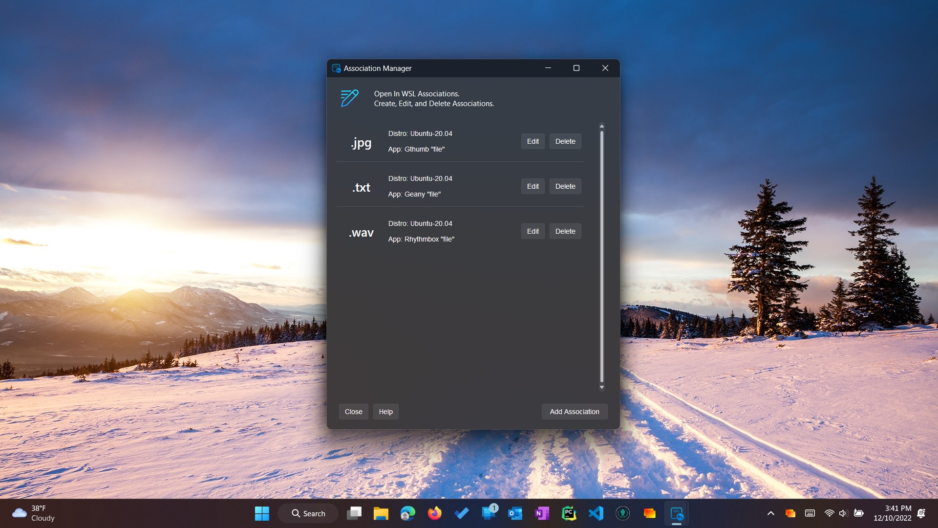 "Open In WSL" File Explorer context menu optionQuickly and Easily Open Windows Files in Linux AppsLets you create and manage associations to forward different windows file types to any Linux programGWSL Integration and wslg supportProvides even more awesome WSL integration!Automatic file extension forwarding with no maintenance!Supports being set as a file handler for all formatsDark and Light UI Modes