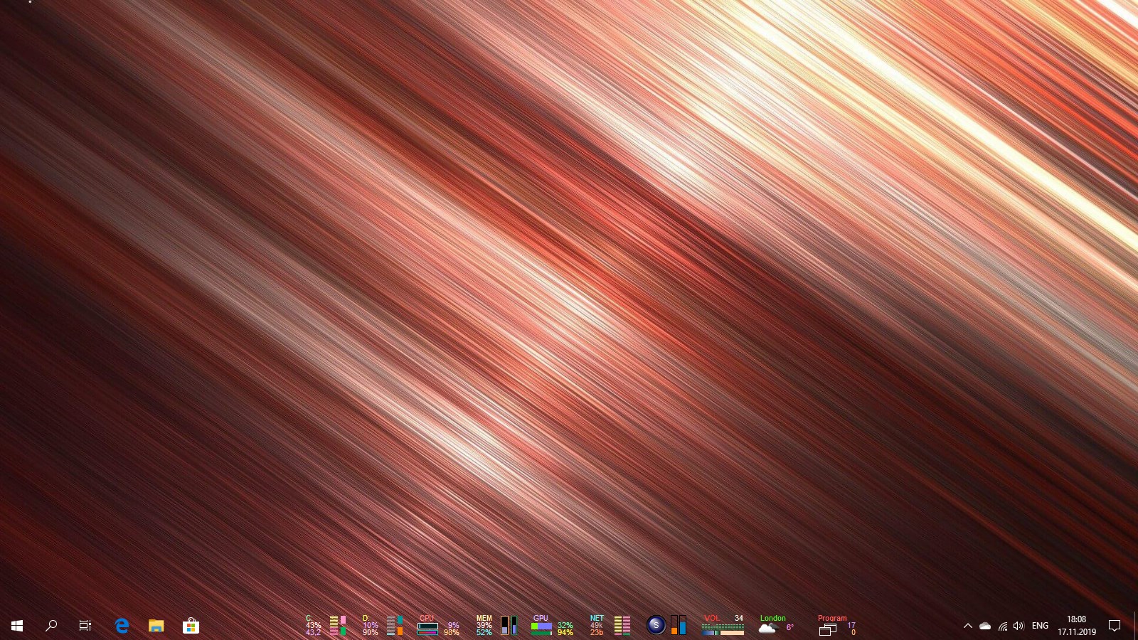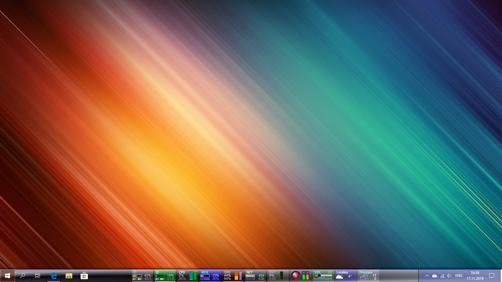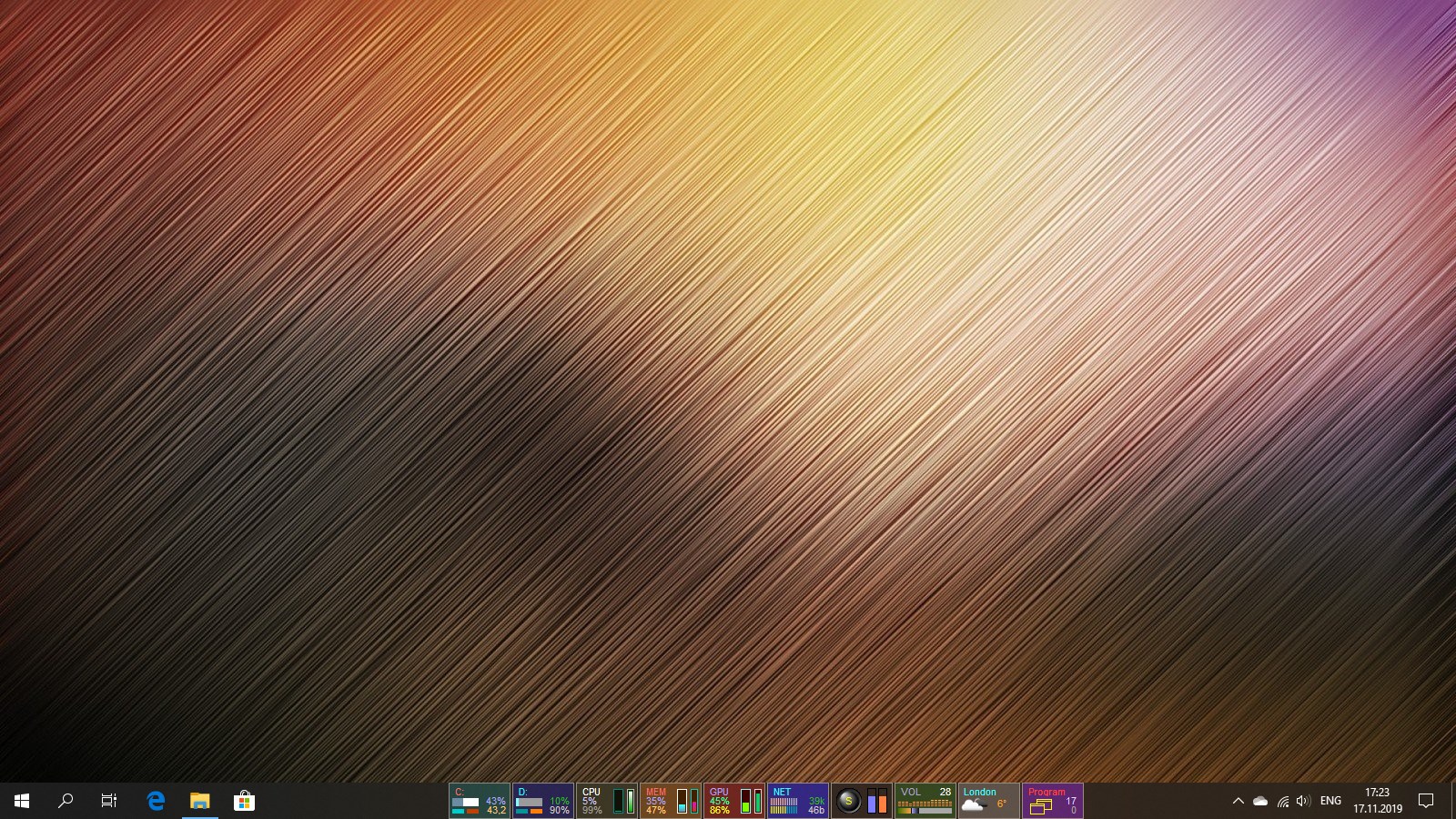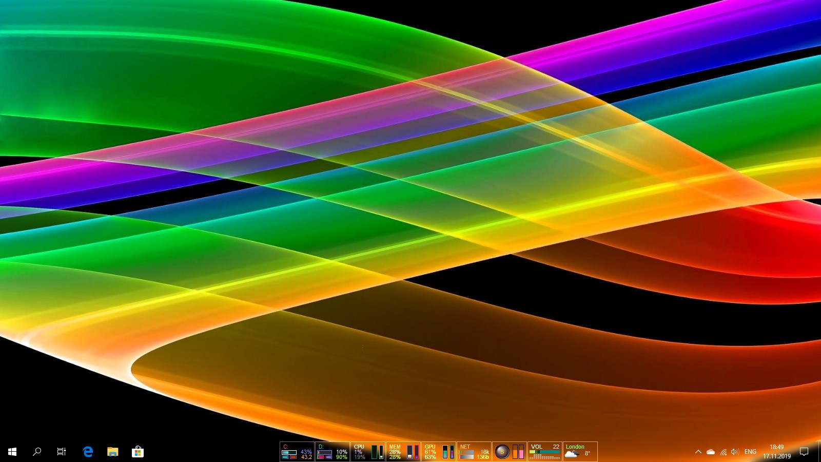 A set of mini-programs on the taskbar offering monitoring of computer parameters HDD & SSD, CPU, RAM, GPU, Network, Battery, Radio, Volume, Weather and providing easy access to numerous functions of Windows OS.