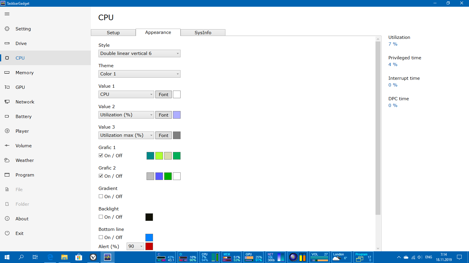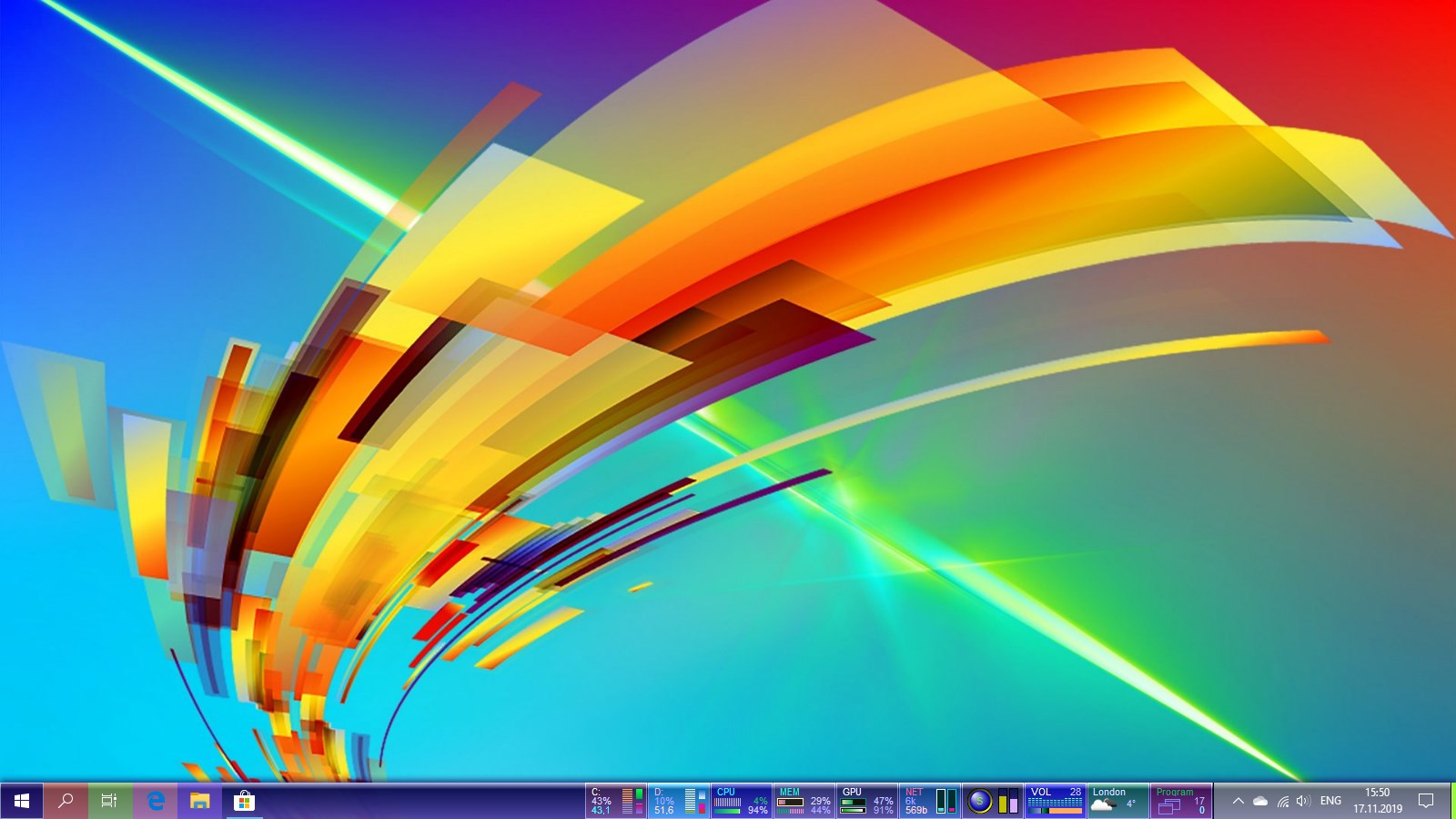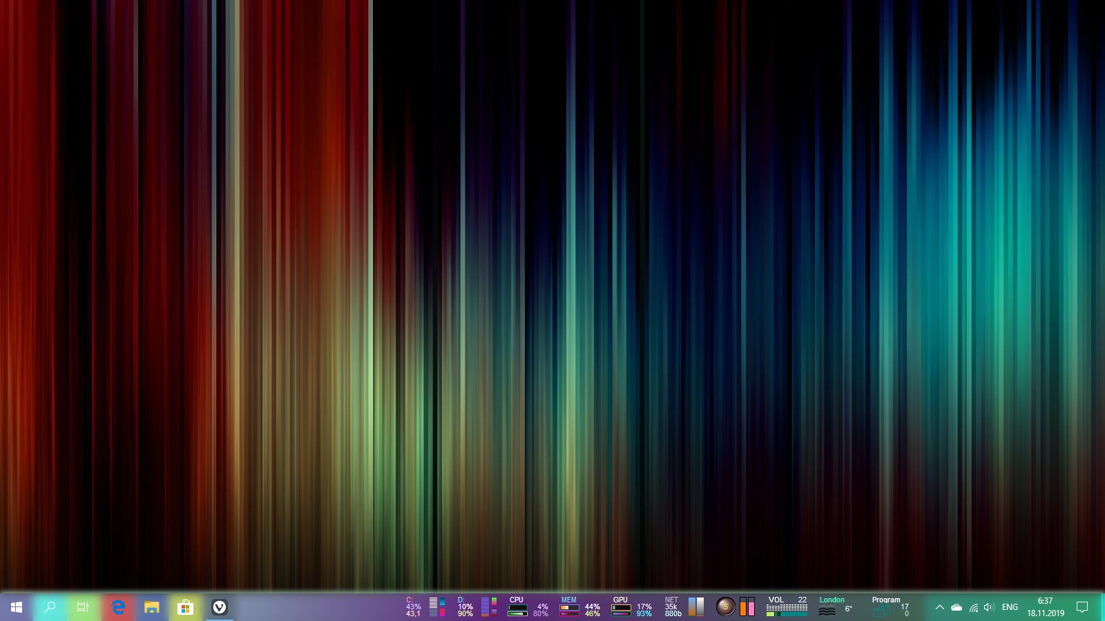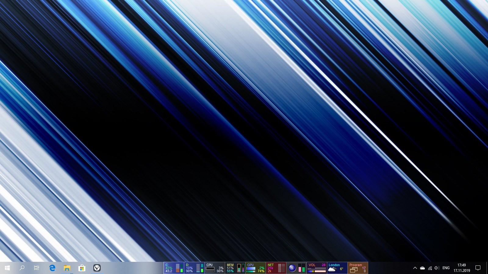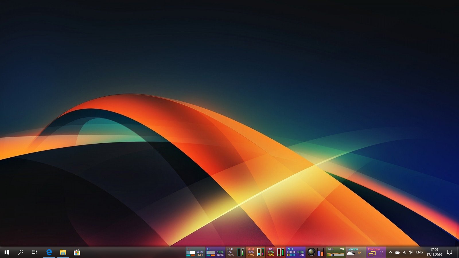 A set of mini-programs on the taskbar offering monitoring of computer parameters HDD & SSD, CPU, RAM, GPU, Network, Battery, Radio, Volume, Weather and providing easy access to numerous functions of Windows OS.