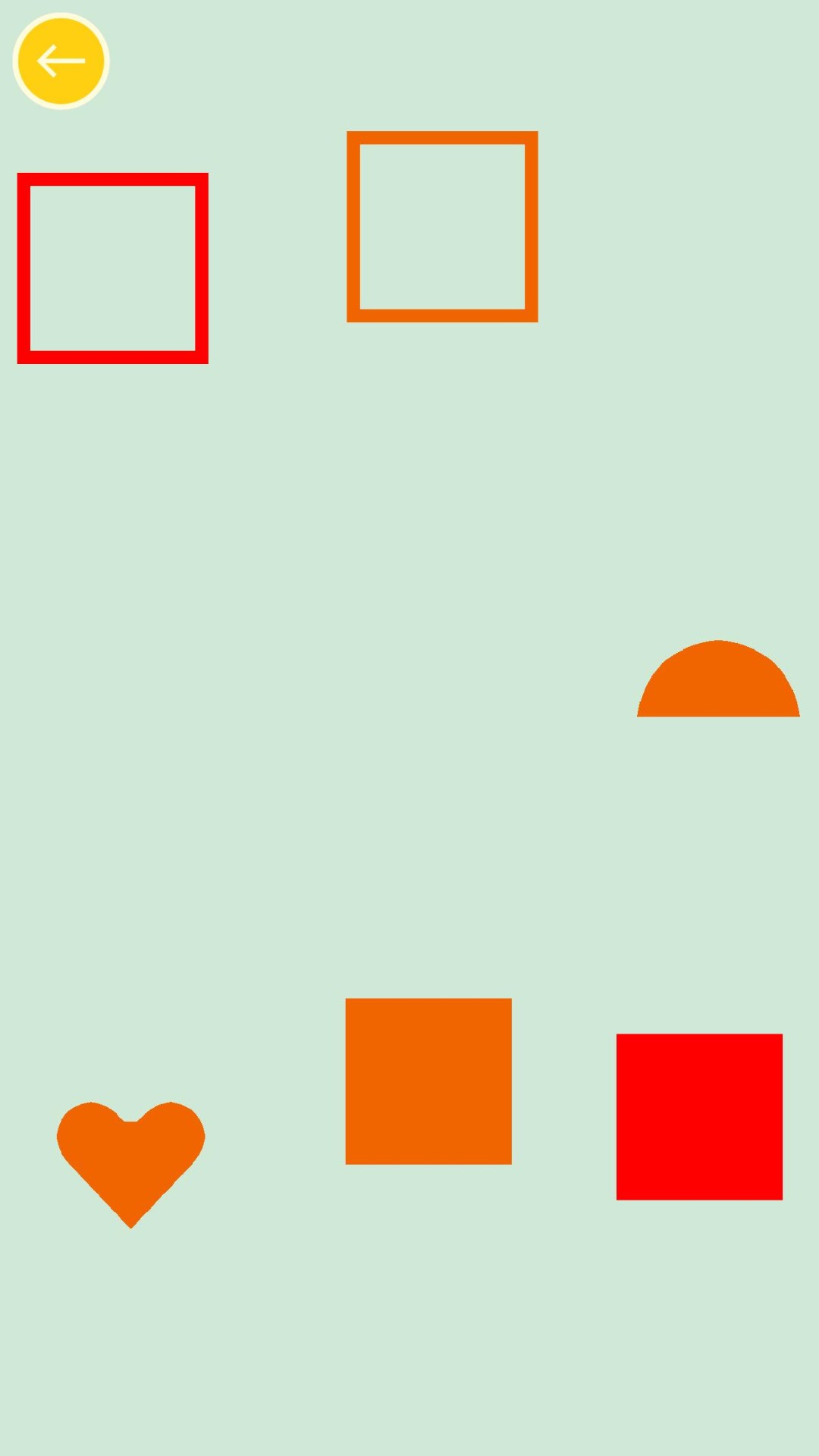 Contains a dozen common shapes: triangular, square, rectangular, trapezoidal, rhombic, round, oval, round, heart-shaped Pentagon, pentagram, etc.; a dozen colors: red, blue, yellow, green, orange, orange, pink, purple, grey, brown, black, white, etc.. Let the child remember and distinguish the shapes and colors quickly in the fun and intuitive drag objects.