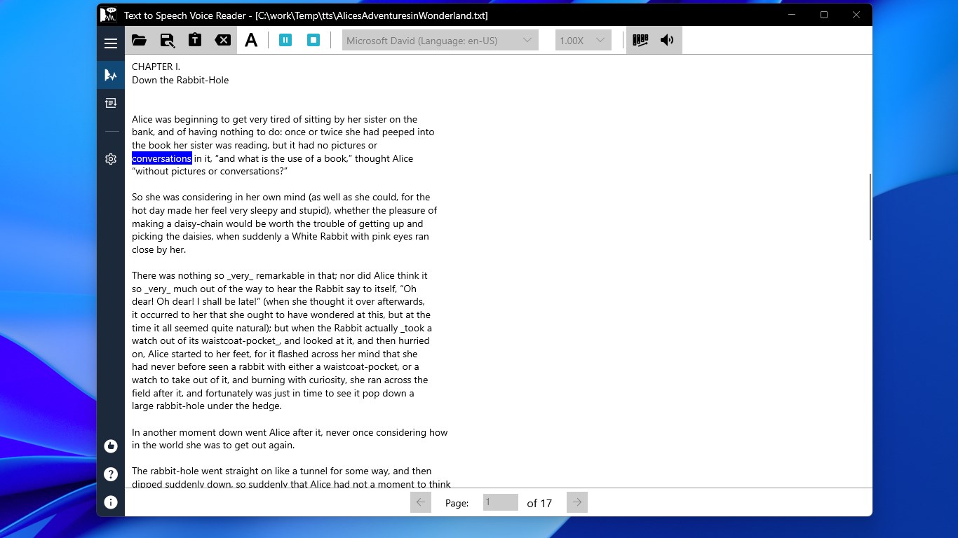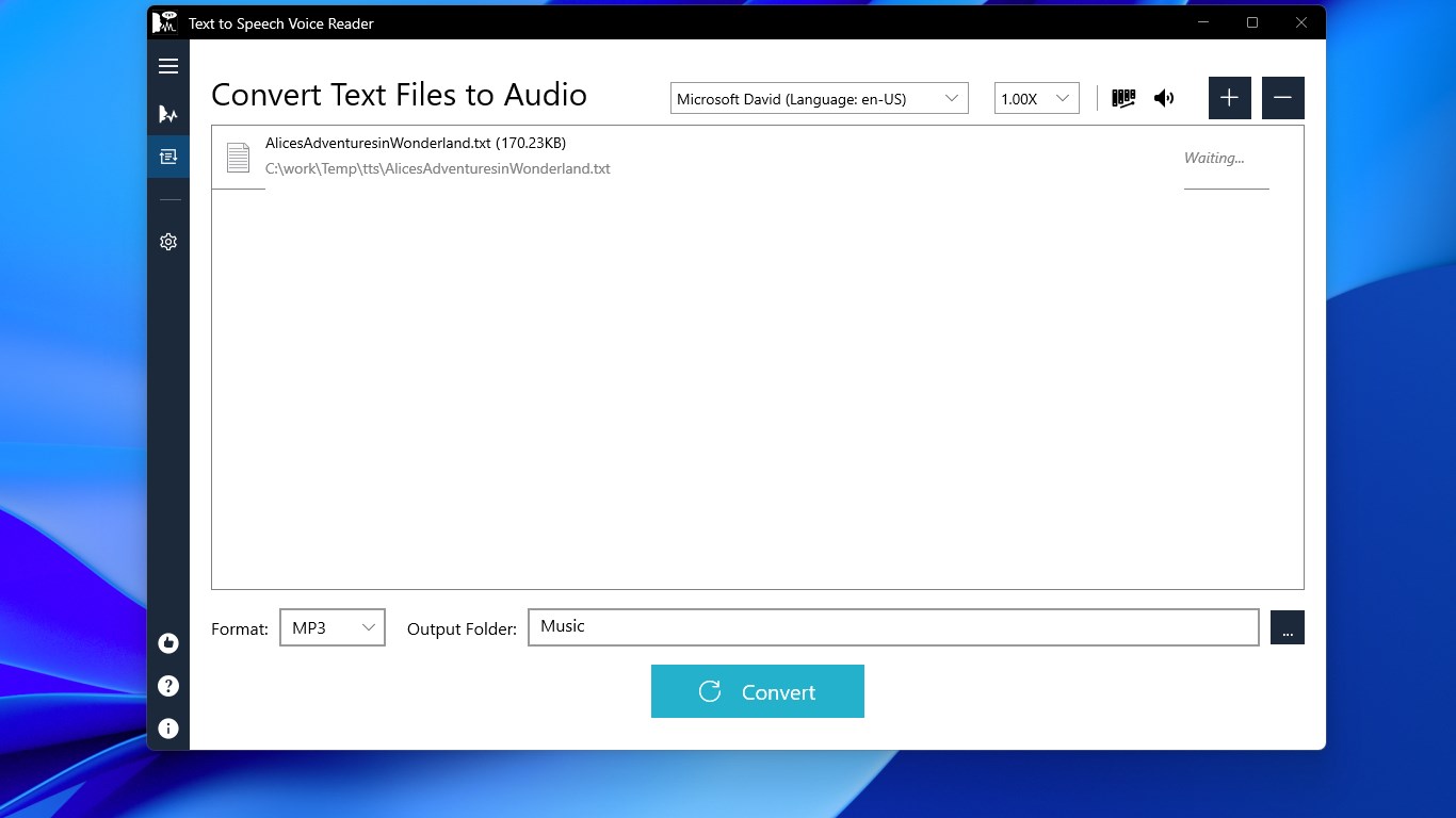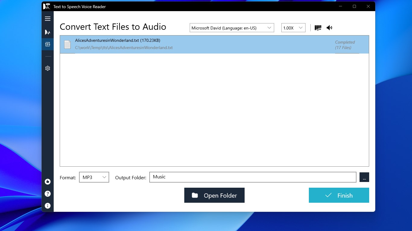 Text to Speech Voice Reader read out loud text for you, whether the text is written by you, copy and pasted from a webpage, or imported from a document. In addition, it provides a batch conversion tool to convert your documents to audio files. Get your copy of Text to Speech Voice Reader from the Microsoft Store today!