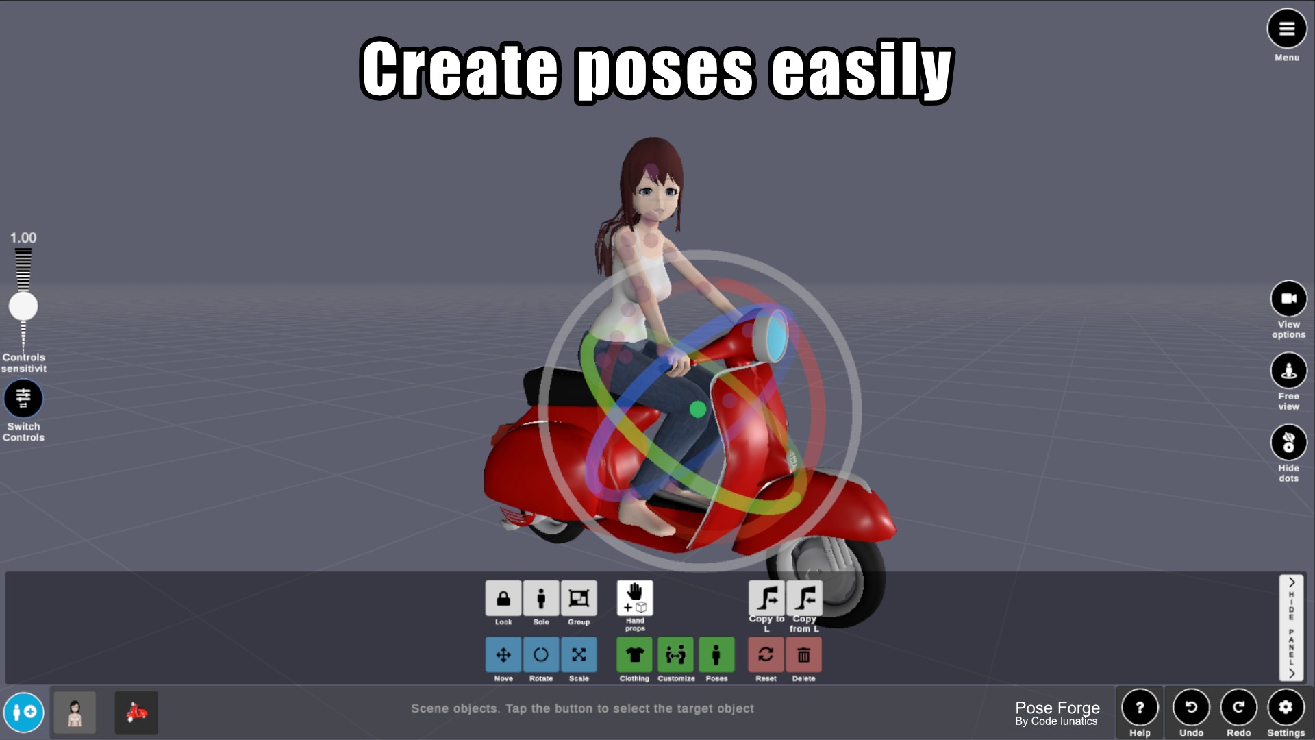 It is not easy to find reference photo of pose that is just right for your needs. With Pose Forge you can create that pose you are looking for and you can look at the pose from any angle you want. Pose Forge is an ideal poser app for character designing, as manga/anime drawing guide, for illustrations or anyone who wants to focus on improving their drawing skills.