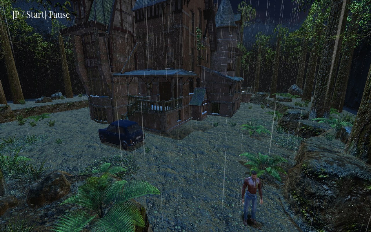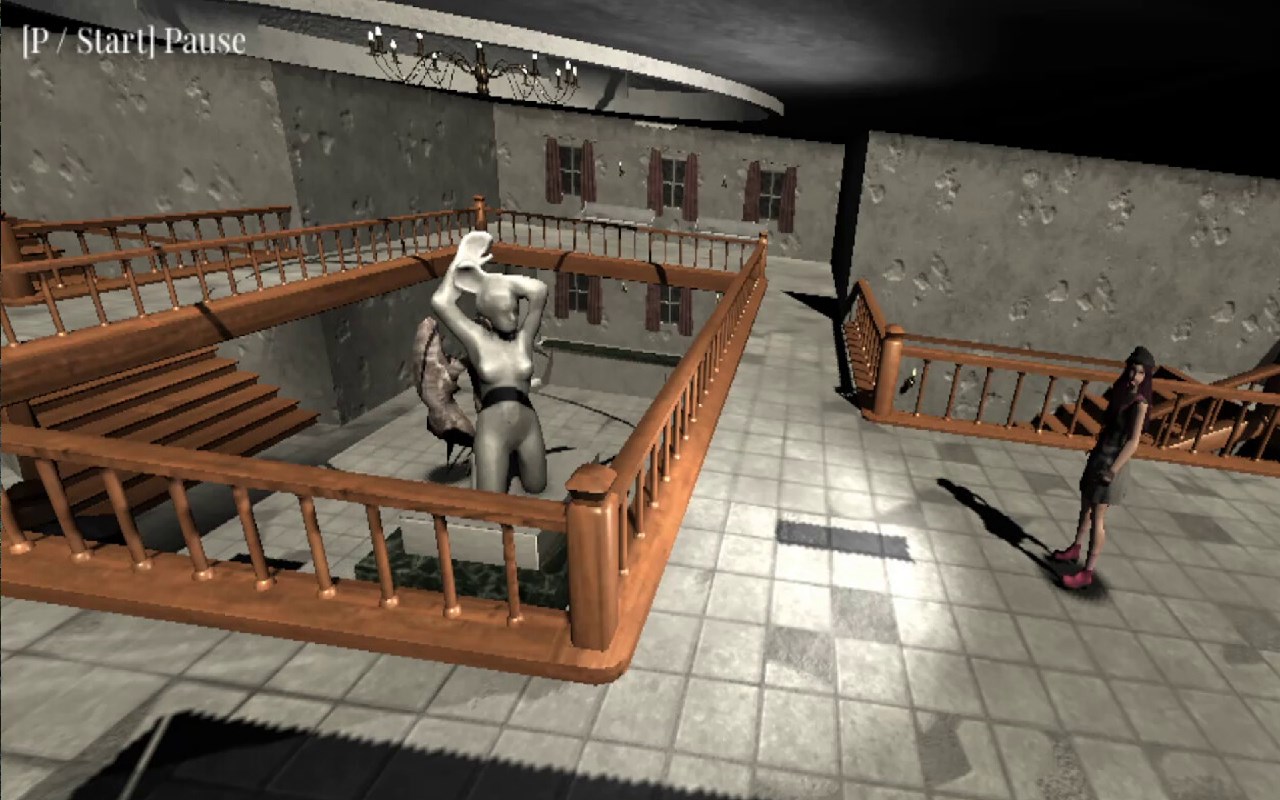 -A game presented in classic 3D survival horror with fixed camera angles adding to the suspense