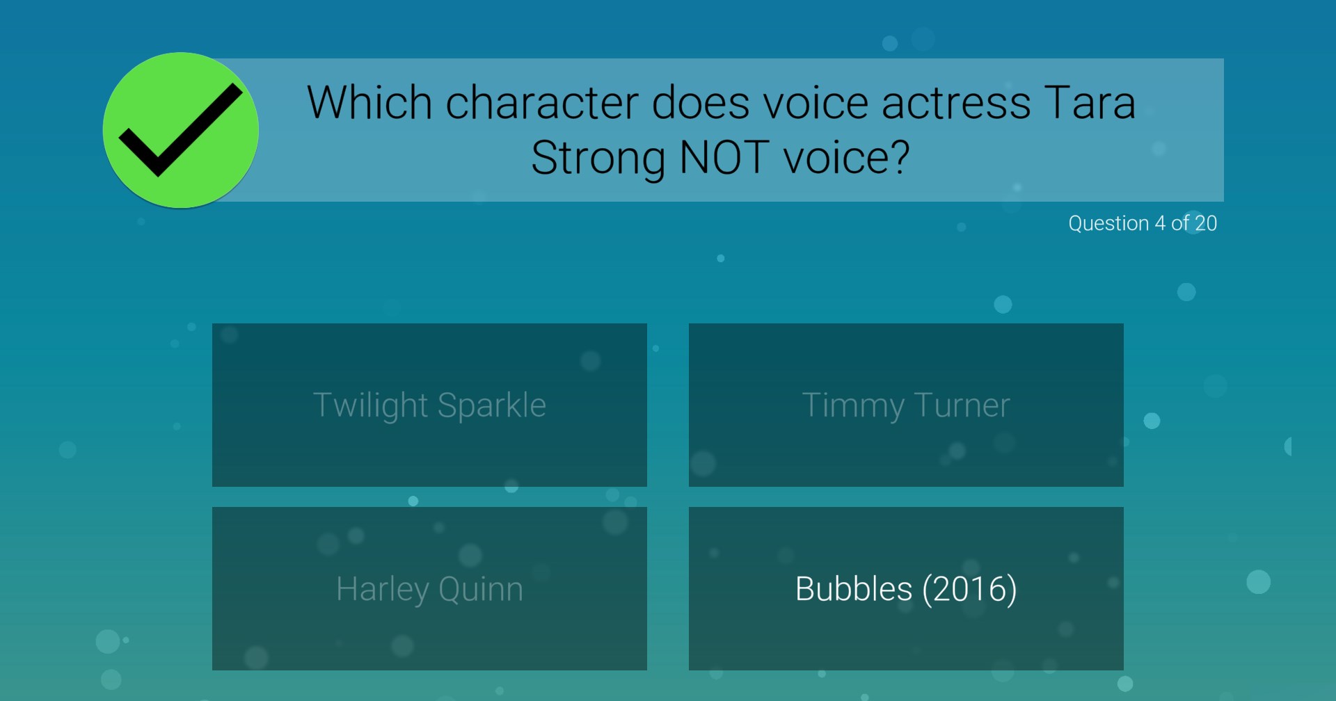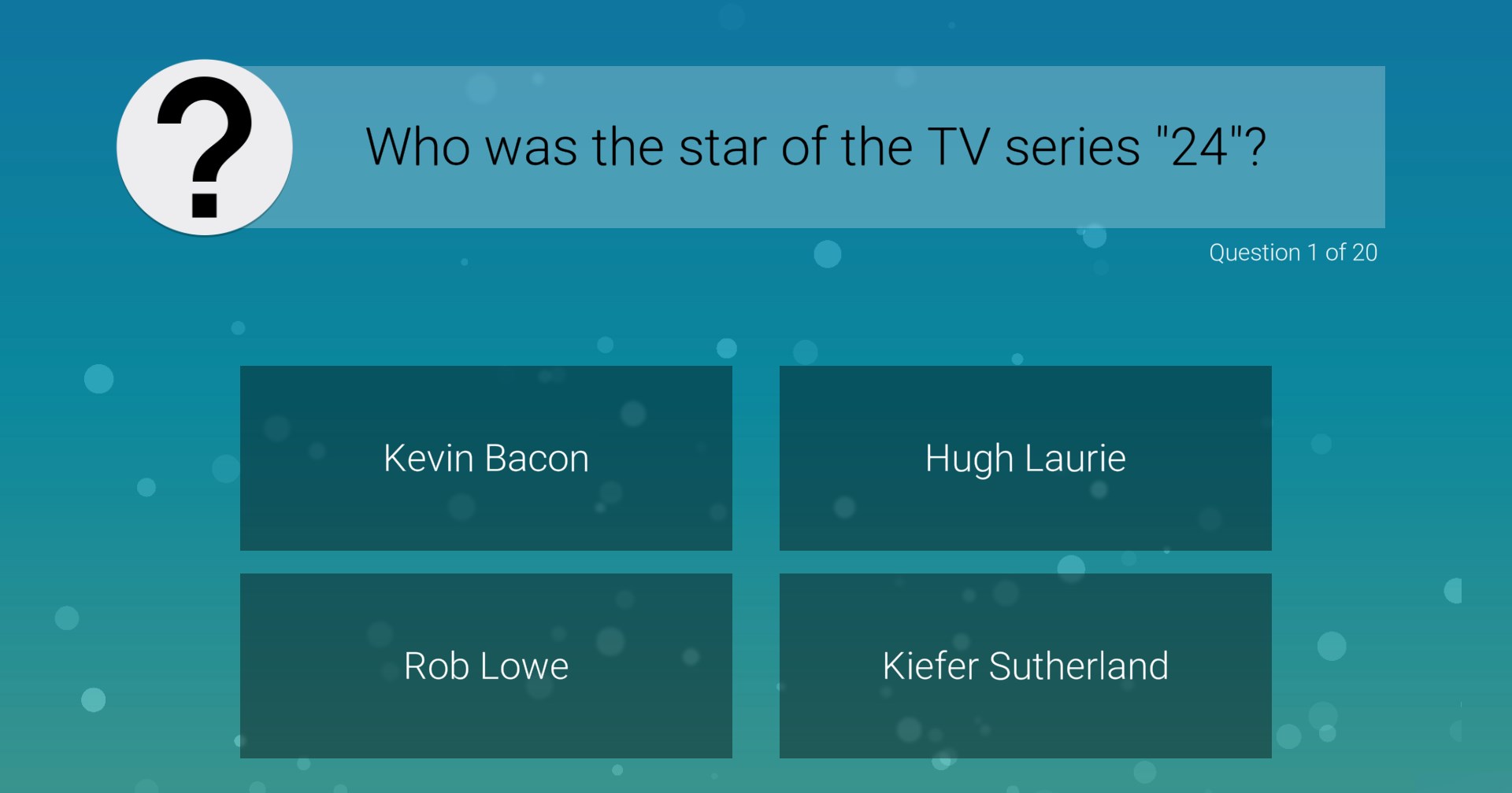 Over 2400 Questions9 Categories ranging from General Knowledge to Video Games3 Game Modes (Standard, Rapid Fire and Sudden Death)Quickly jump into your favorite mode which automatically updates the more you playKeep track of your overall best score