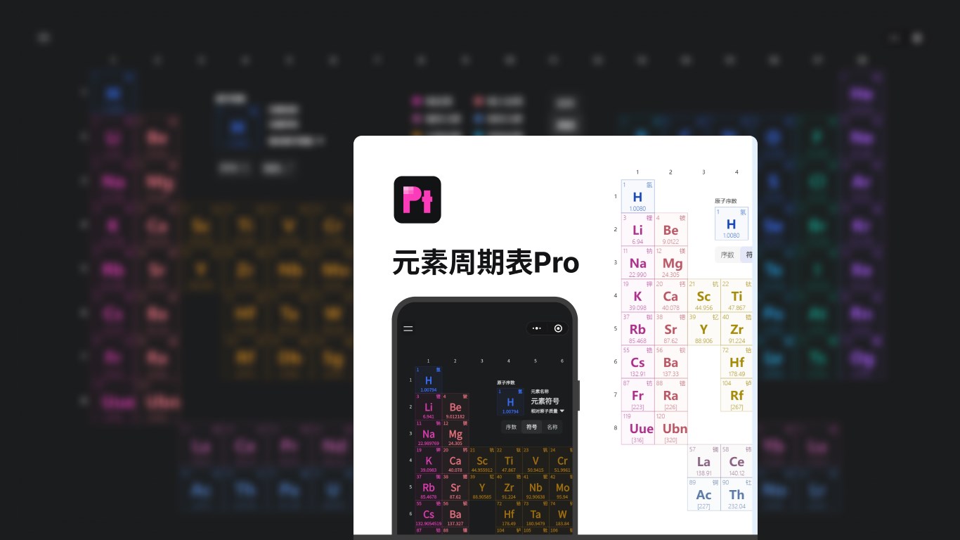 化学元素周期表可缩放表格,底部动态展示多种属性,周期趋势等详尽的元素属性数据,元素高清图片,动态电子图丰富有趣的元素百科溶解性表等其他工具