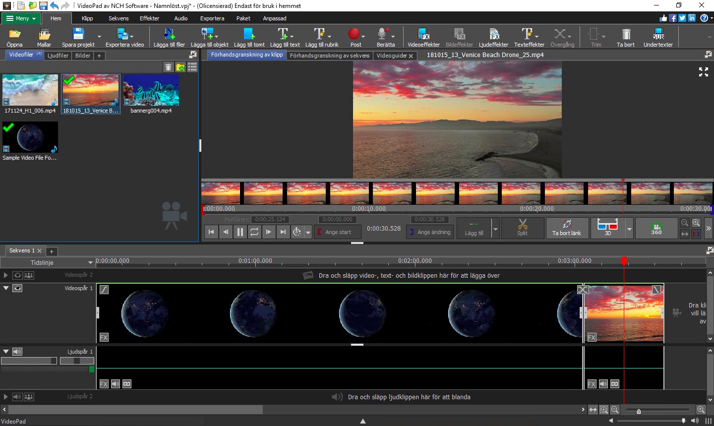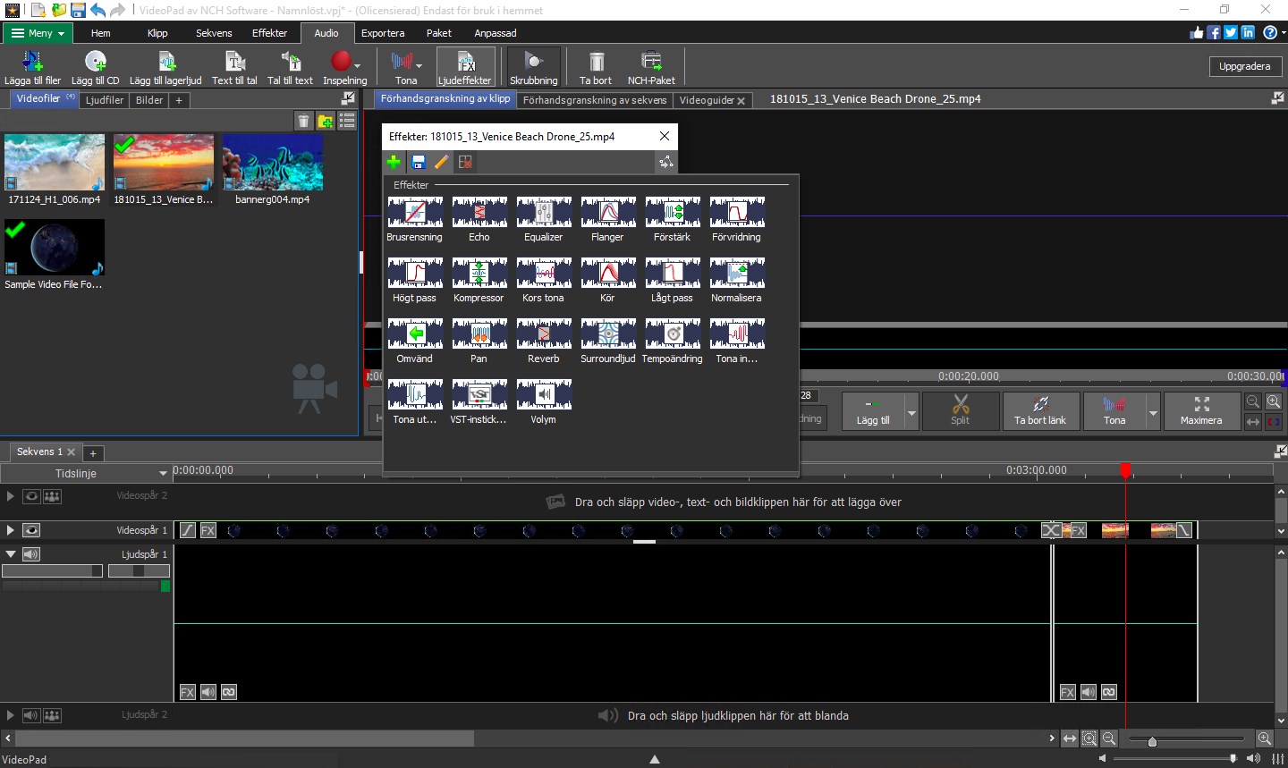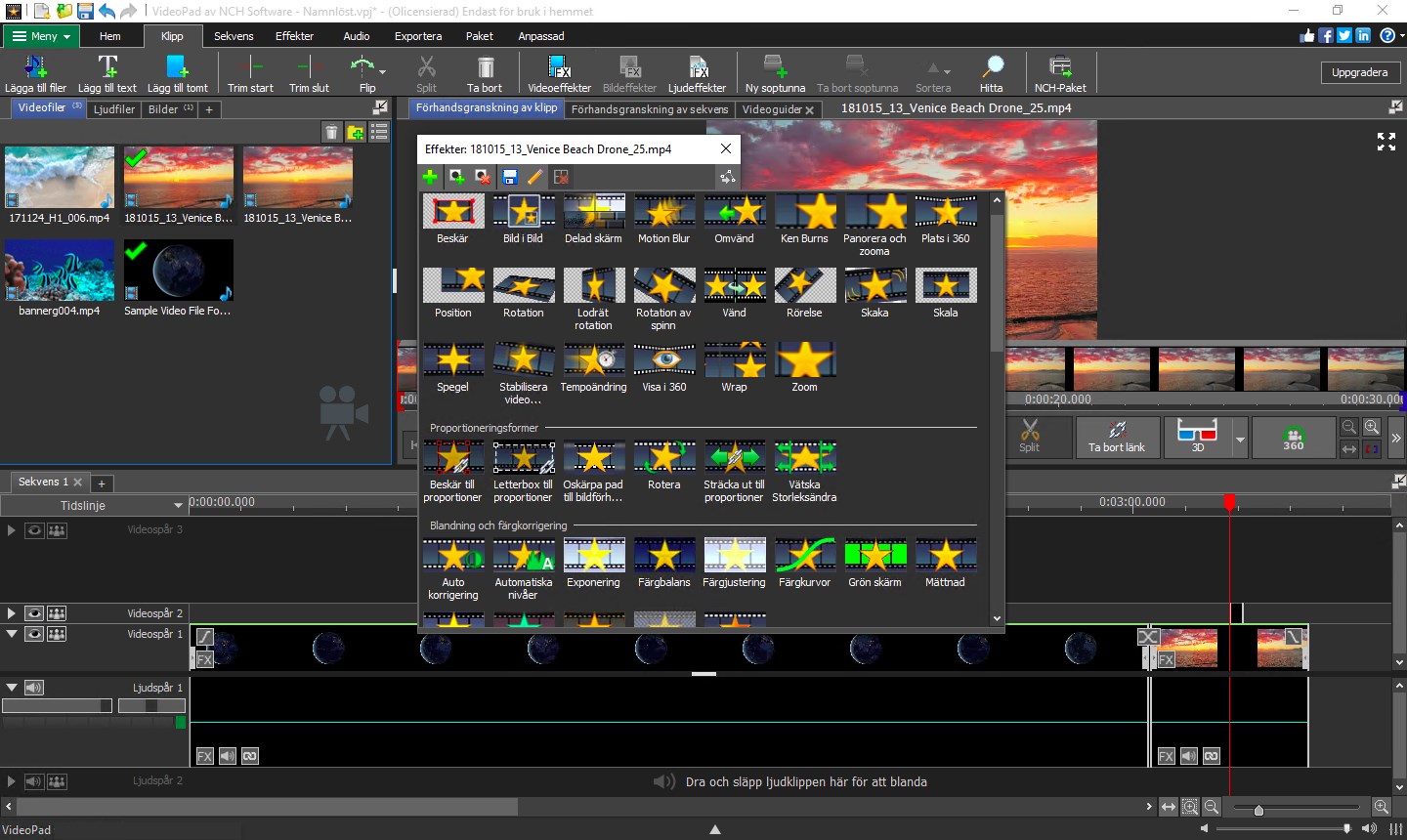 VideoPad är en kraftfull och professionell videoredigerare och filmskapare. Med sitt intuitiva gränssnitt kommer du att skapa på några minuter. Dra och släpp bara dina video-, ljud- och bildfiler till tidslinjen eller spela in ljud och video från grunden med VideoPad. Att redigera ditt projekt kunde inte bli enklare, med ett stort antal användbara redigeringsverktyg, video- och ljudeffekter och övergångar att välja mellan. När du gör din film perfekt kan du enkelt dela den till dina sociala mediekonton eller bränna en papperskopia på DVD.