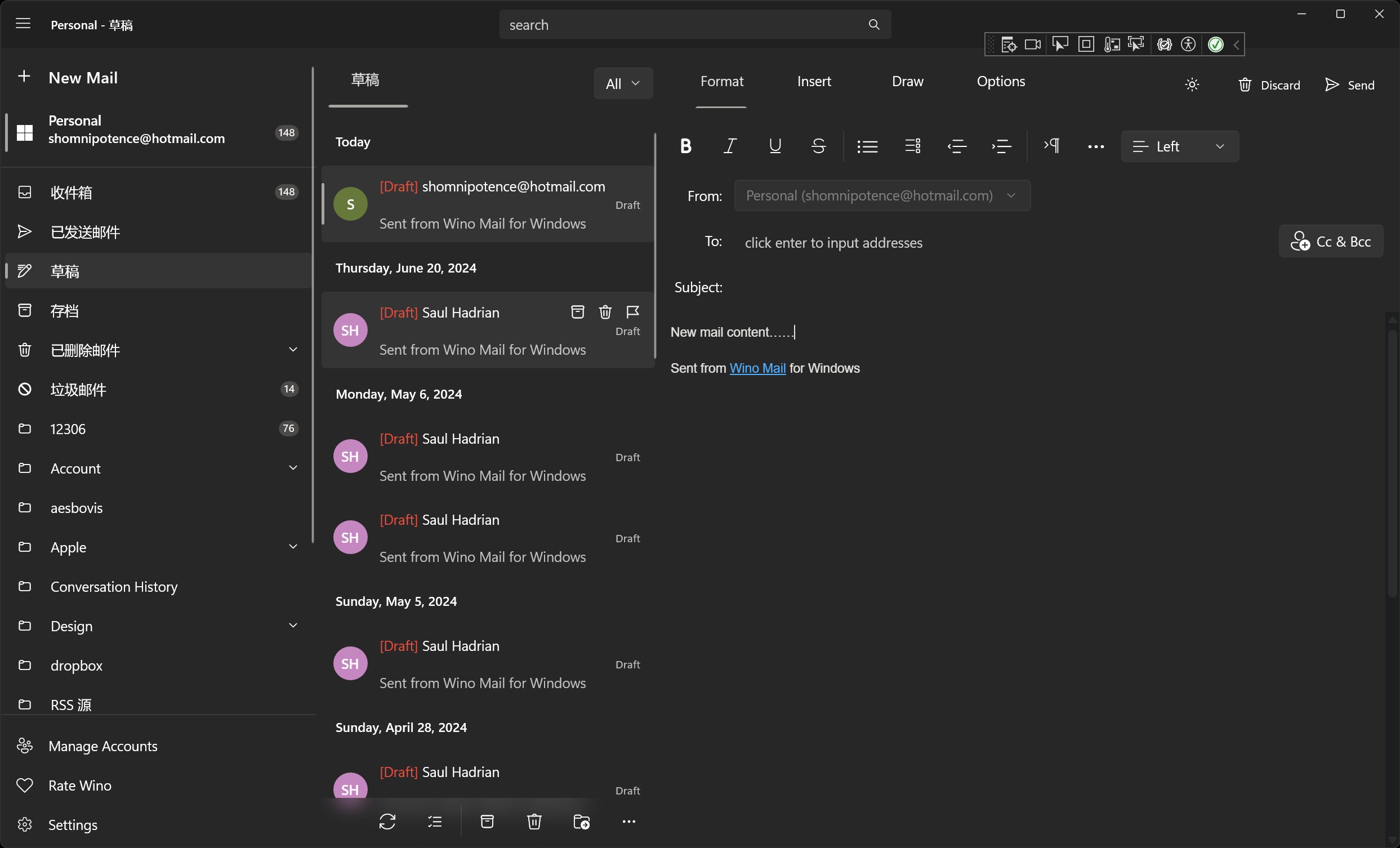 Another branch of Wino Mail, it is now redesigned with a more beautiful appearance and harmonious appearance with Windows 11.