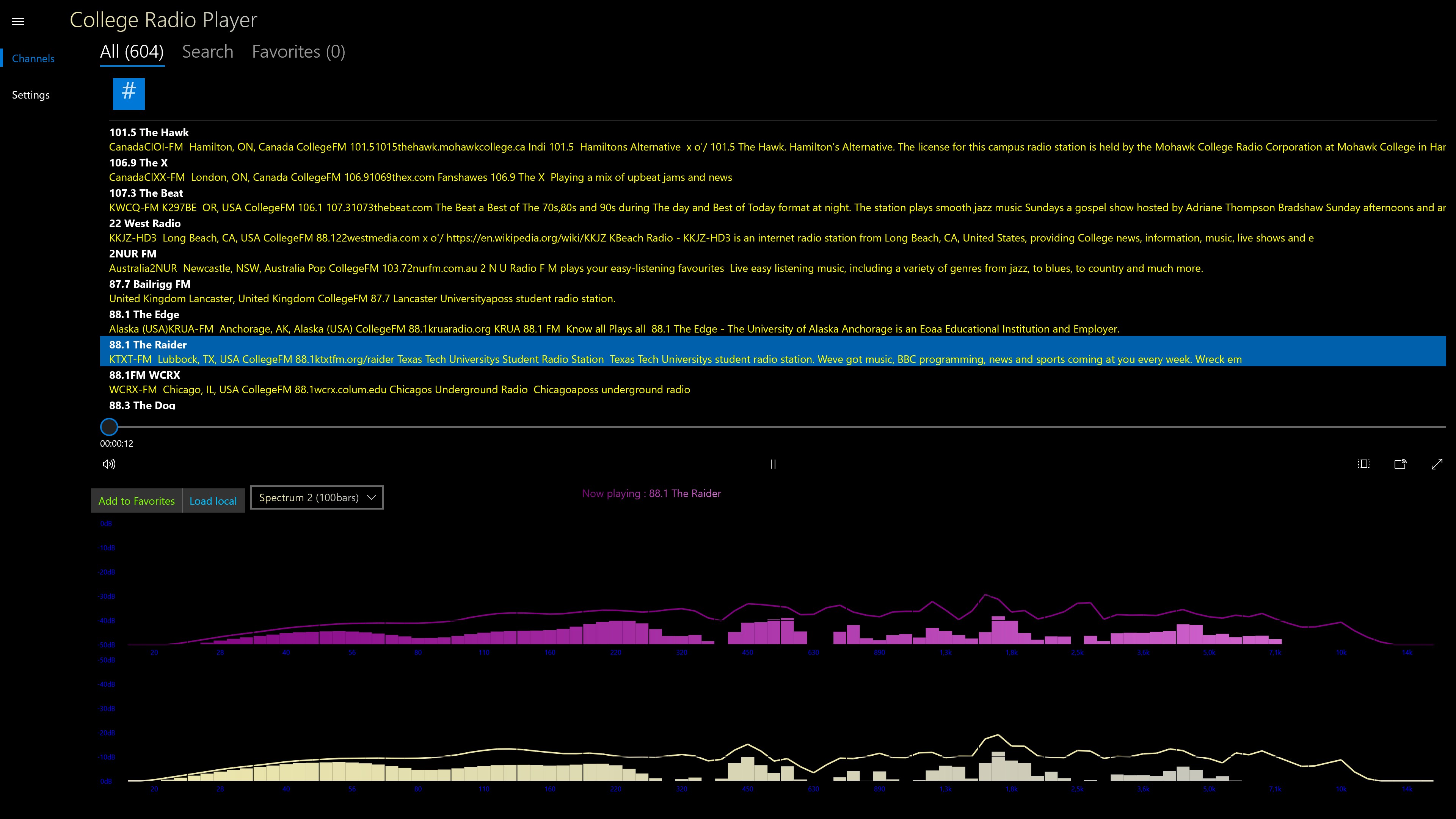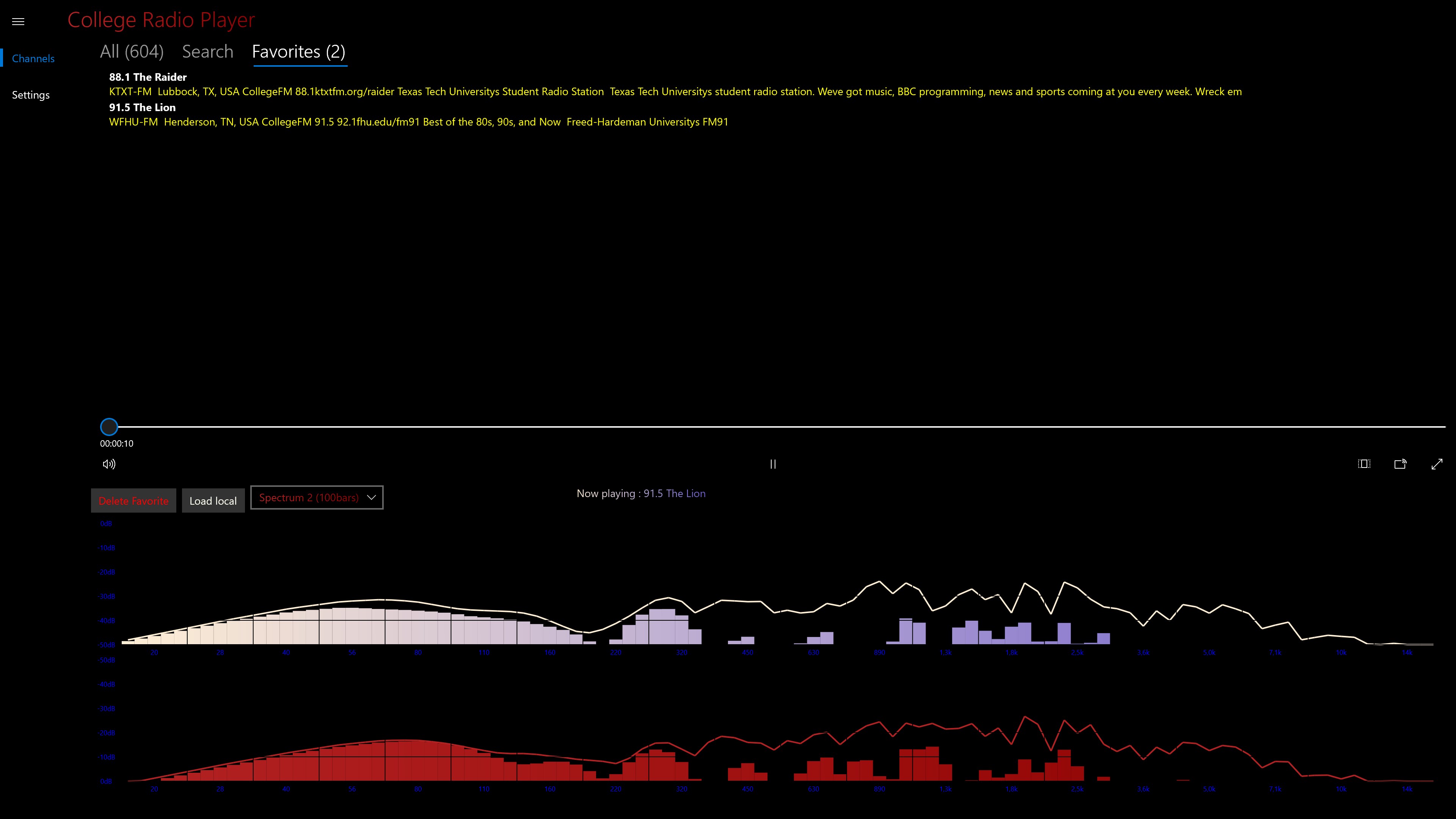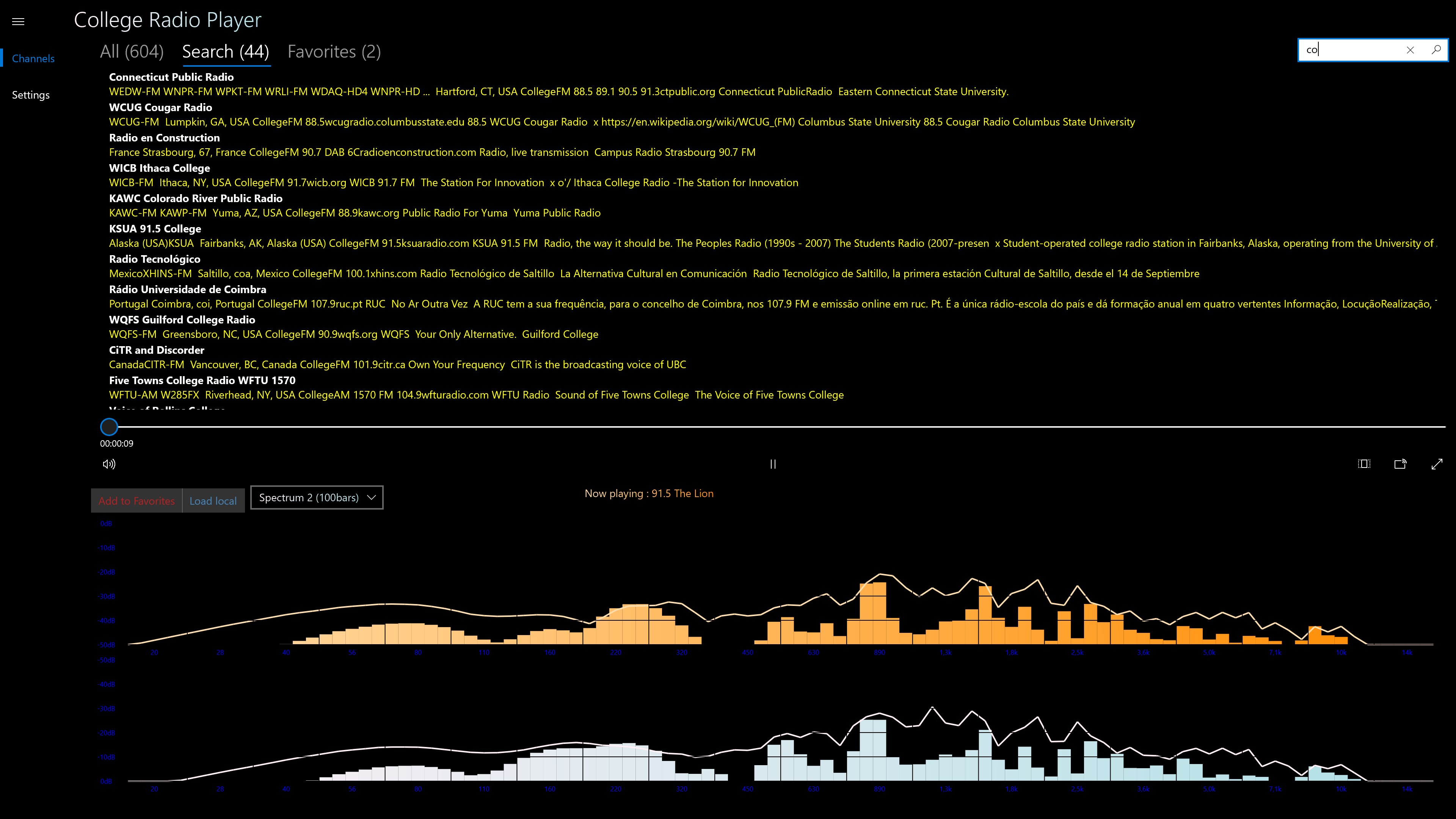 Search stations and/or add to Favorites List. Customize under Settings Audio Spectrum Analyzer.