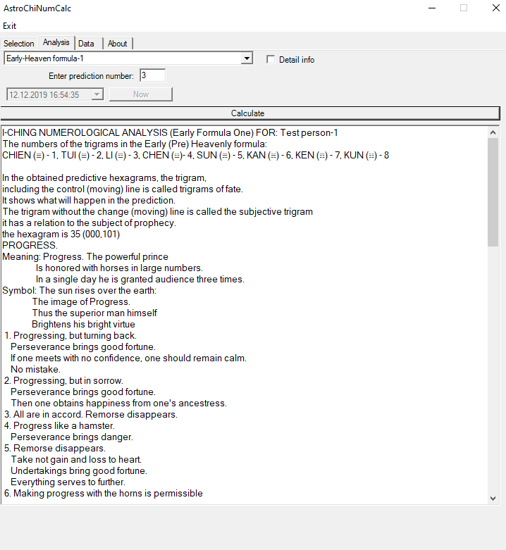 - Four prediction formulae based on the Early-Heavnen Formula. Hexagram and trigram analysis.