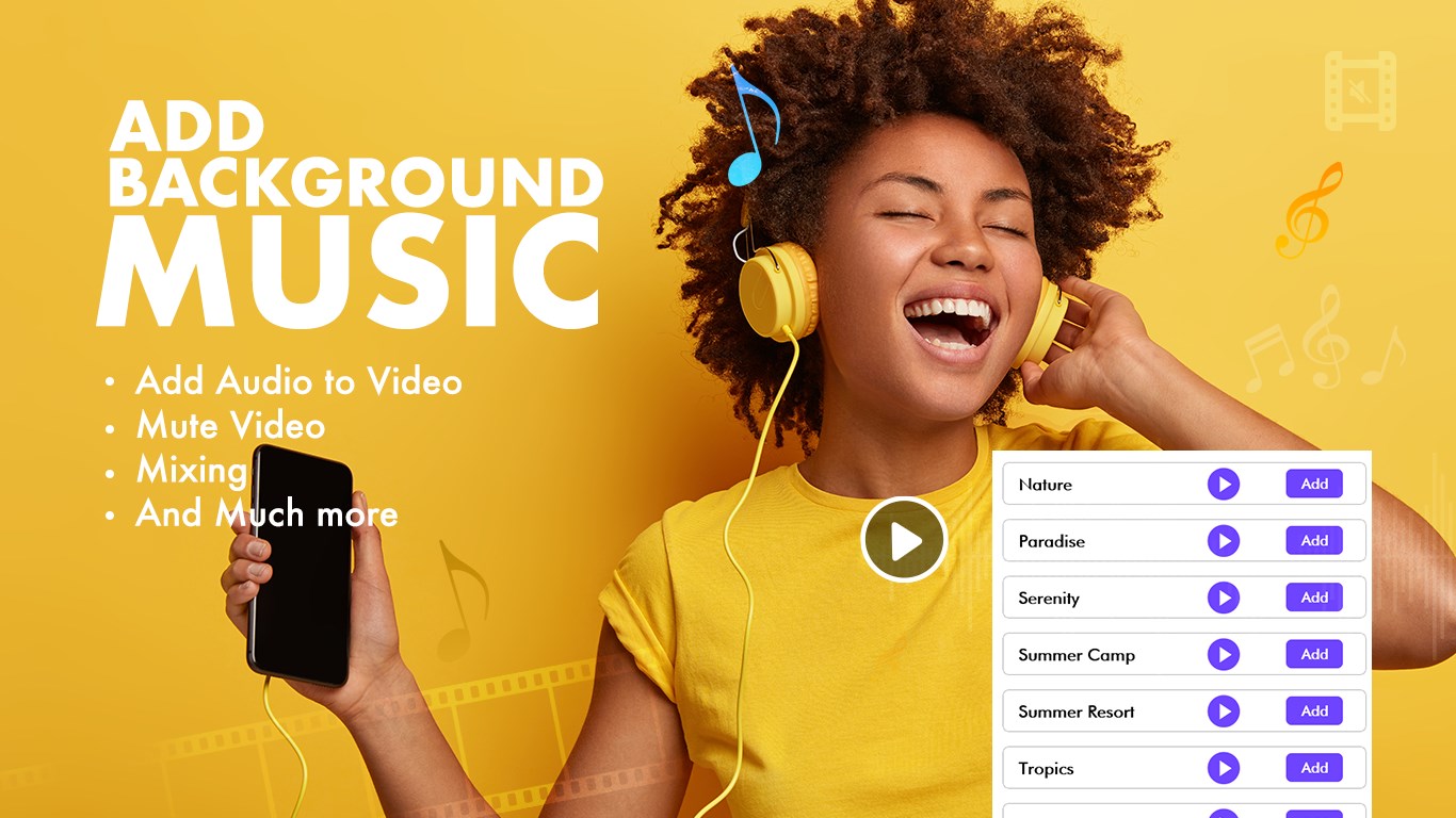 Add audio to video enables, you to customize your video by adding your favourite background music. This app supports various audio formats to mix audio with video.