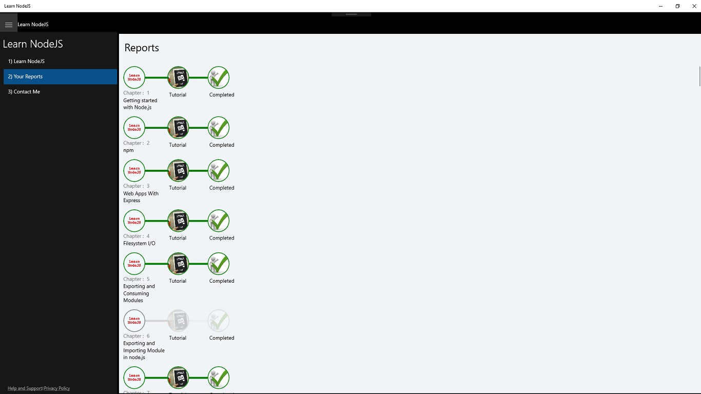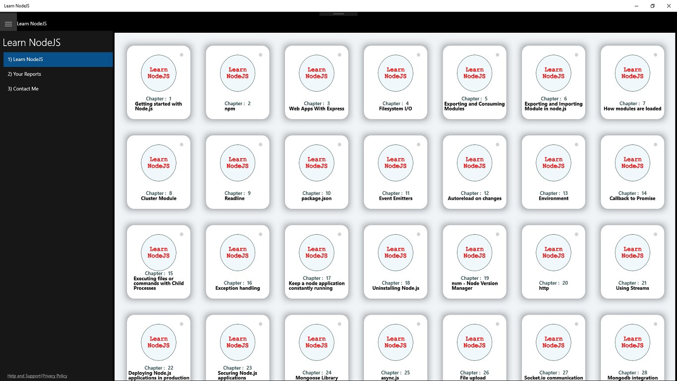 This app contains tutorials and reports for the all who want to learn NodeJS.