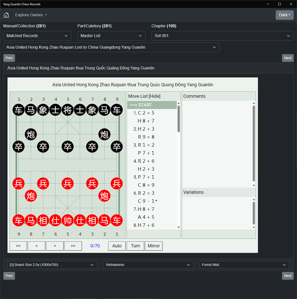 A Collection 281 Game Records of Yang GuanLin translated from Chinese to both English and Vietnamese.