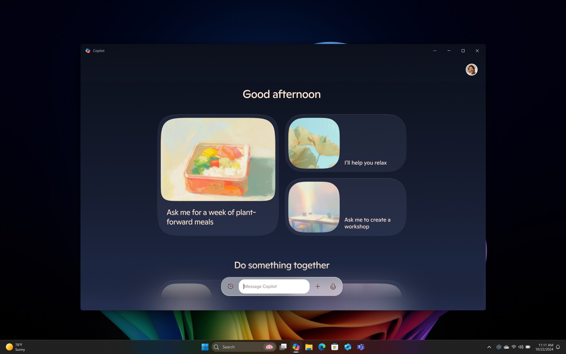 Microsoft Copilot is your everyday AI companion that helps you to be smarter, more productive, more creative, and more connected to the people and things around you. Whether you want to learn how to code, plan an Influencer level vacation, or just need a little help writing a hard email, your everyday AI companion is there to help you get the job done like a pro. If you missed that meeting and need a quick recap or can’t figure out the tax code for your new side hustle, Copilot is there to sprinkle some AI pixie dust on the problem. There when you need it, Copilot works smoothly, seamlessly, and securely across your Microsoft apps to elevate everything you do. Speed up tasks, get more personalized answers and useful information, or find new creative inspiration. And you can do it all by asking for what you want the way you naturally write and speak. It doesn’t care if the task is big or small, it’s just there to help you get the job done. Copilot empowers you to achieve anything you can imagine.