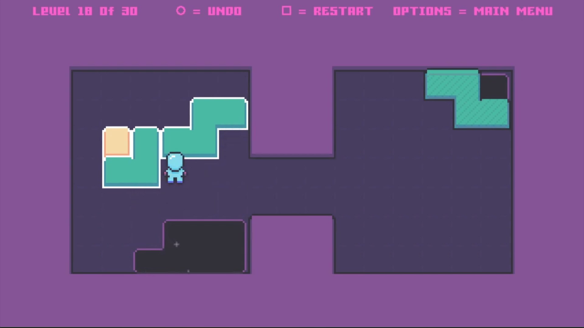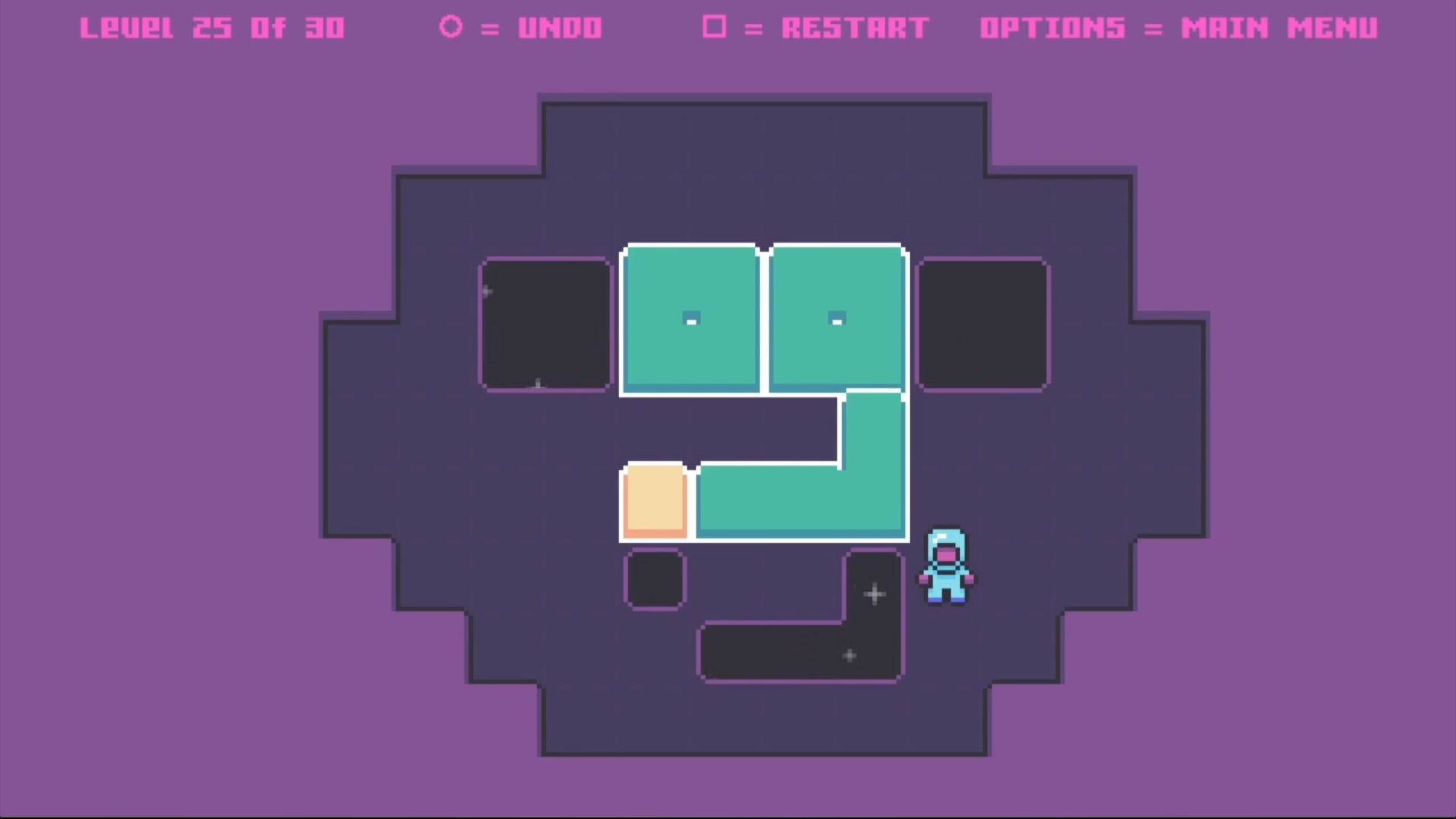 A sokoban inspired push blocking puzzle game. Use the d-pad to move the space man with the objective of pushing the green blocks until they perfectly cover each hole in order to progress through each level. Undoing moves or restarting levels if you are stuck is possible. Yellow blocks are magnetic. They will stick to any other green block they touch and they too will become magnetic. You can push your blocks into the purple walls to rearrange the shape of the connecting blocks. The spaceman must avoid the holes or they will get sucked out into space.