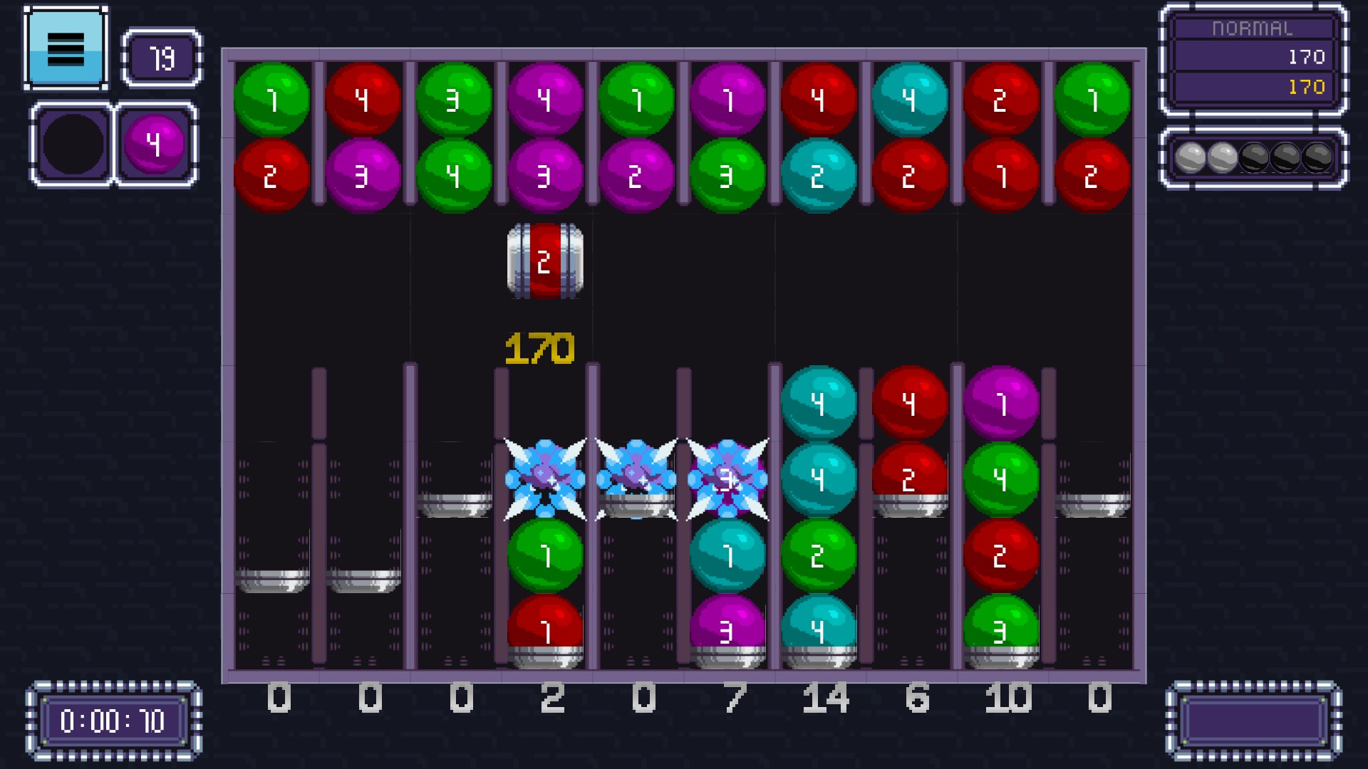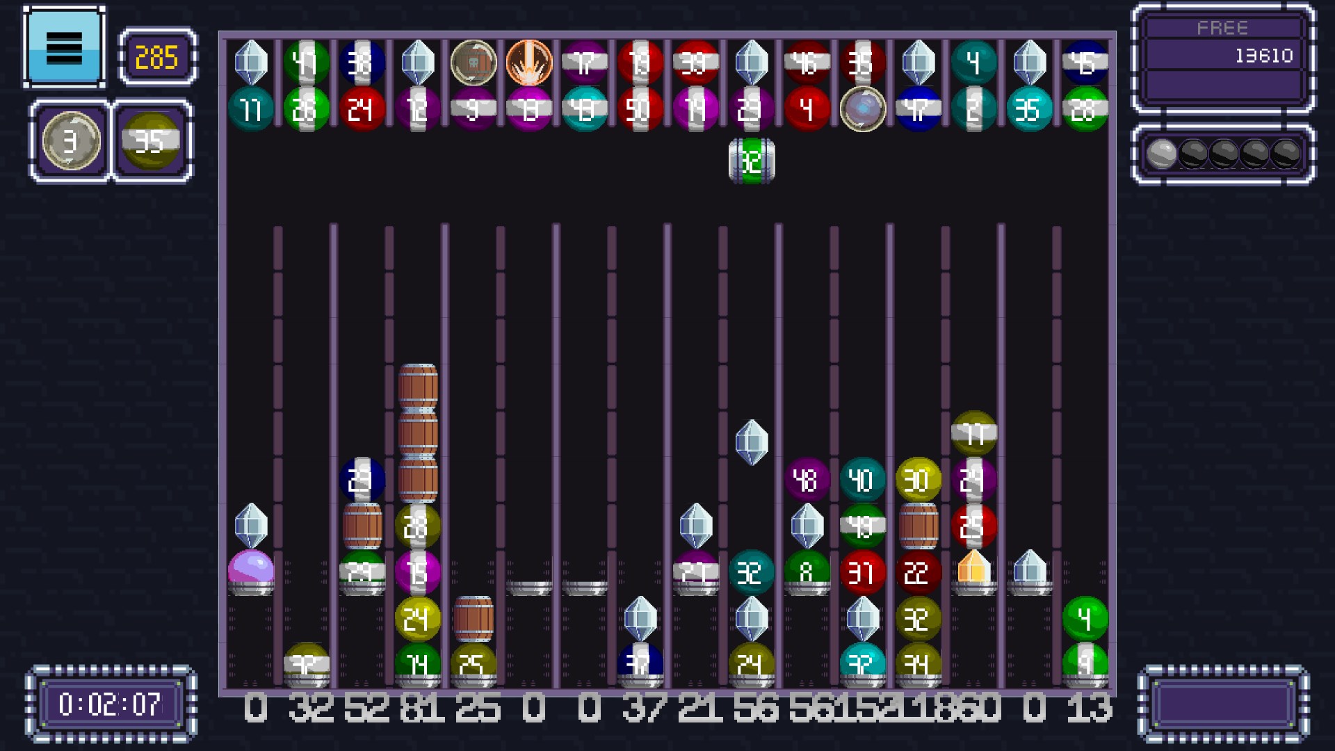 Severel power-ups can help you in your game, like bombs, jokers, colorizers, and silver crystals that will clear the entire field if you place 3 of them next to each other.