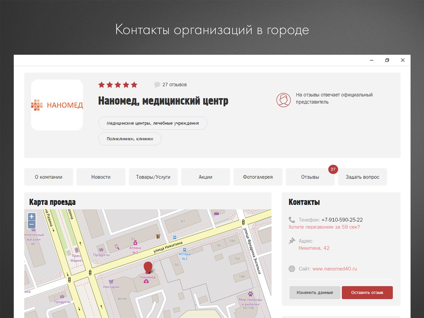 — Смотрите контакты и местонахождение организаций на карте города