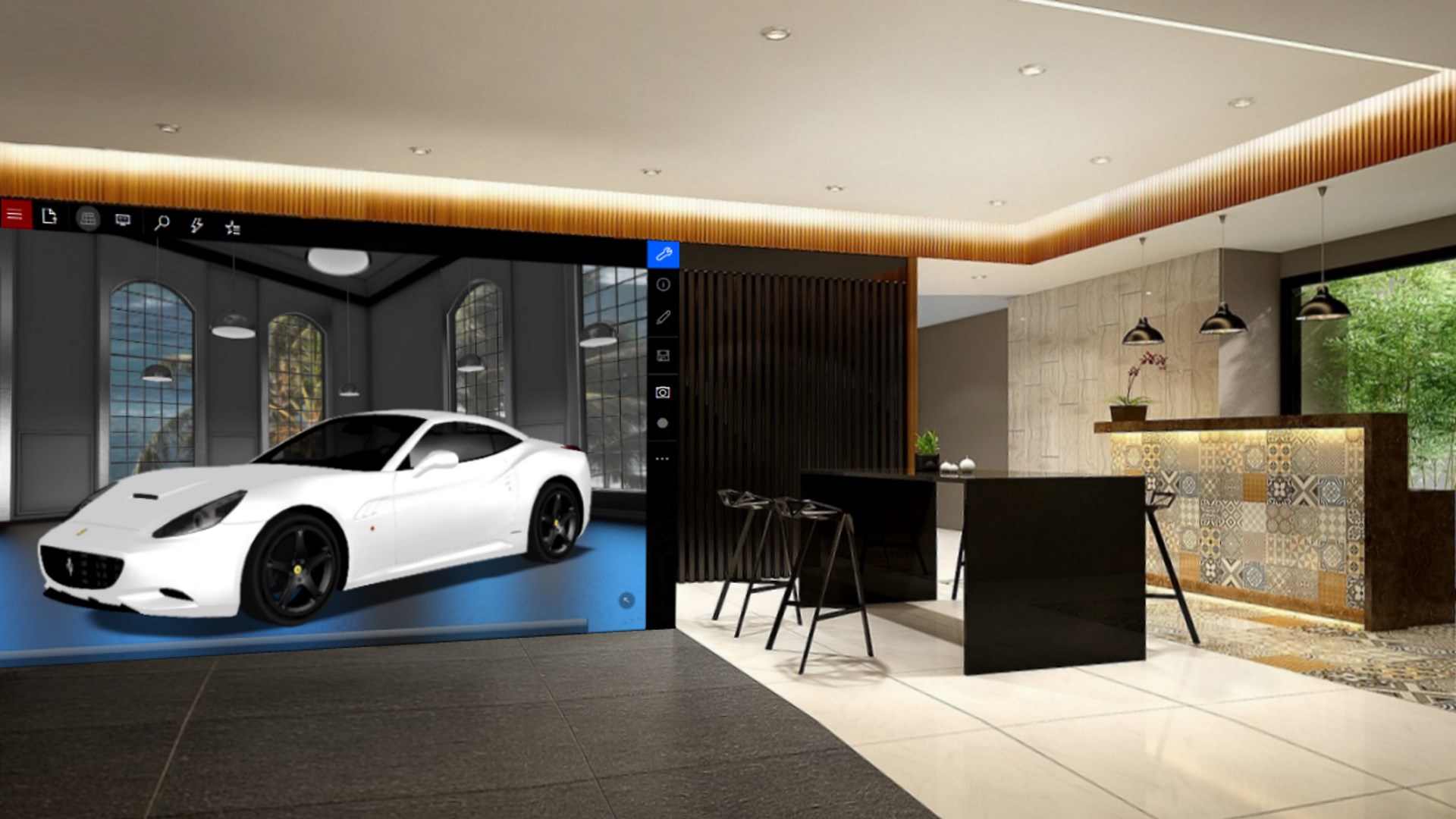 View and place two-dimensional and three-dimensional objects in the interactive space. Using the 3D viewer, you can view model details by selecting any model from the space. Use 2D files in formats .JPG, .JPEG, .JPE, .JFIF, .PNG, .BMP, .DIB, .GIF, .TIF, .TIFF, .EXIF, .AVI, .WMV, .MPG,. MP4. Use 3D files in formats .OBJ, .3DS, .STL, .OBJ, .LWO, .OFF, .3DHSM. Use easy-to-use tools to place models while maintaining their proportions. Take screenshots, GIF recordings, and videos. Add hyperlinks to files and pages on the Internet to two-dimensional and three-dimensional objects, and combine models to create photorealistic spaces. To edit 3D models, you can use: 3D Studio Max, Blender, or other programs.