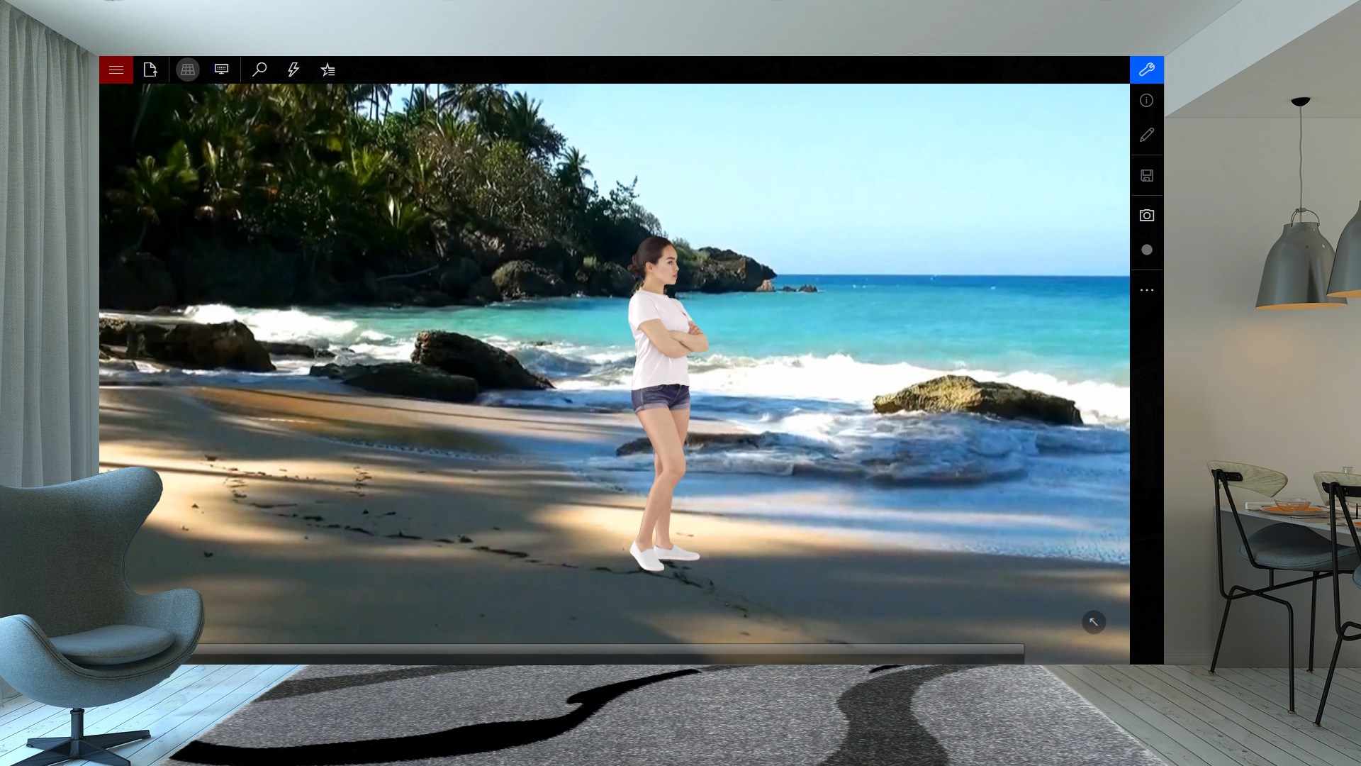 Use a projector or large screens for interior decoration using the projection of an interactive 3D space. The program can be used in isolated rooms to simulate the interior and landscape.