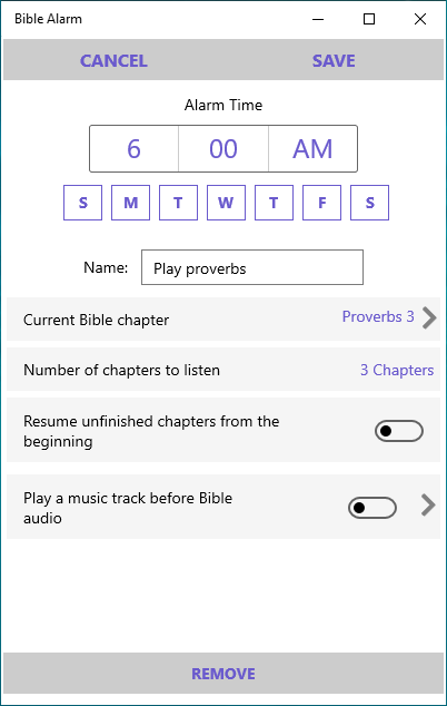 An app to do a scheduled audio reading of the Bible (New World Translation).