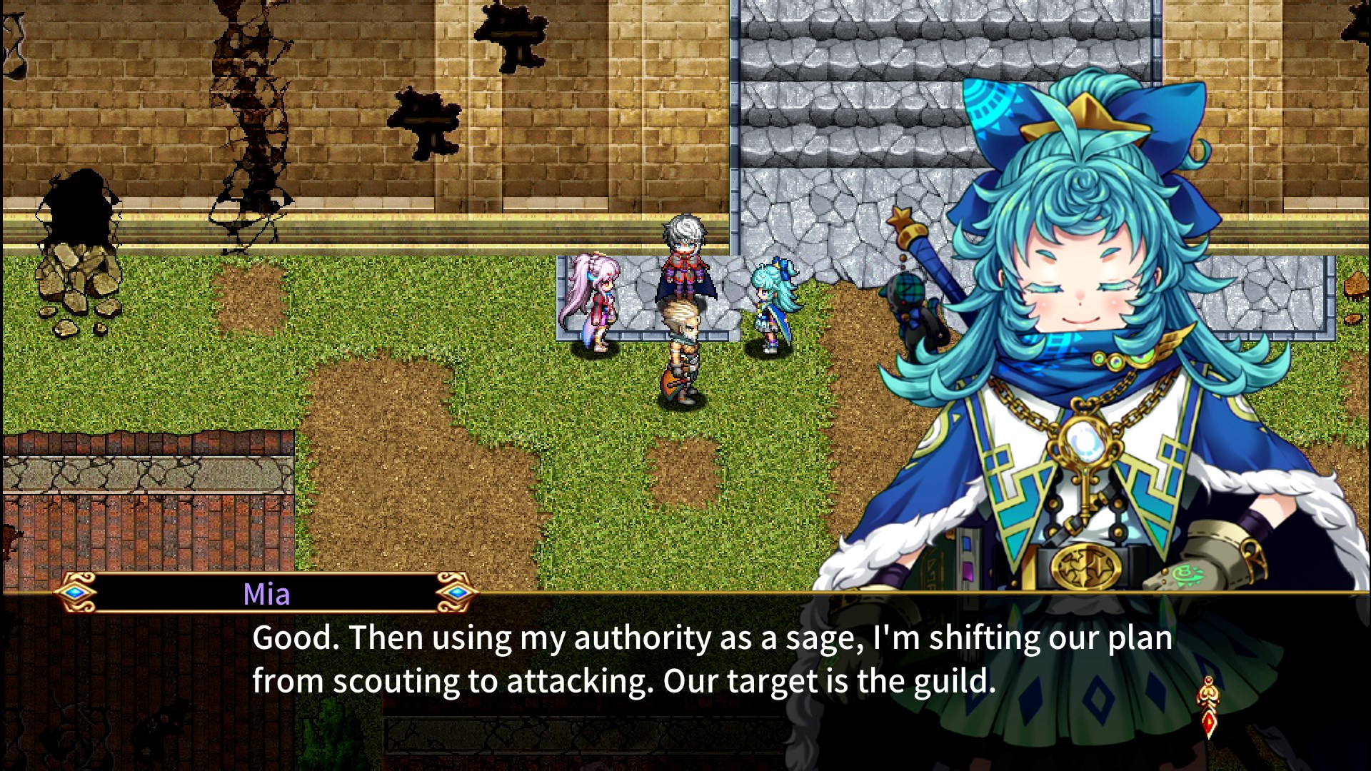 The heroine is an actual wall that provides support to the main characters by merging with walls or acting as a wind breaker if needed. Turn-based battles can be engaged with 3x3 grid battles by using skills with different effects or by summoning golems to take down your foes. Alchemize items, learn passive skills and enjoy the tons of quests and extra enjoyment that await in this magical adventure!