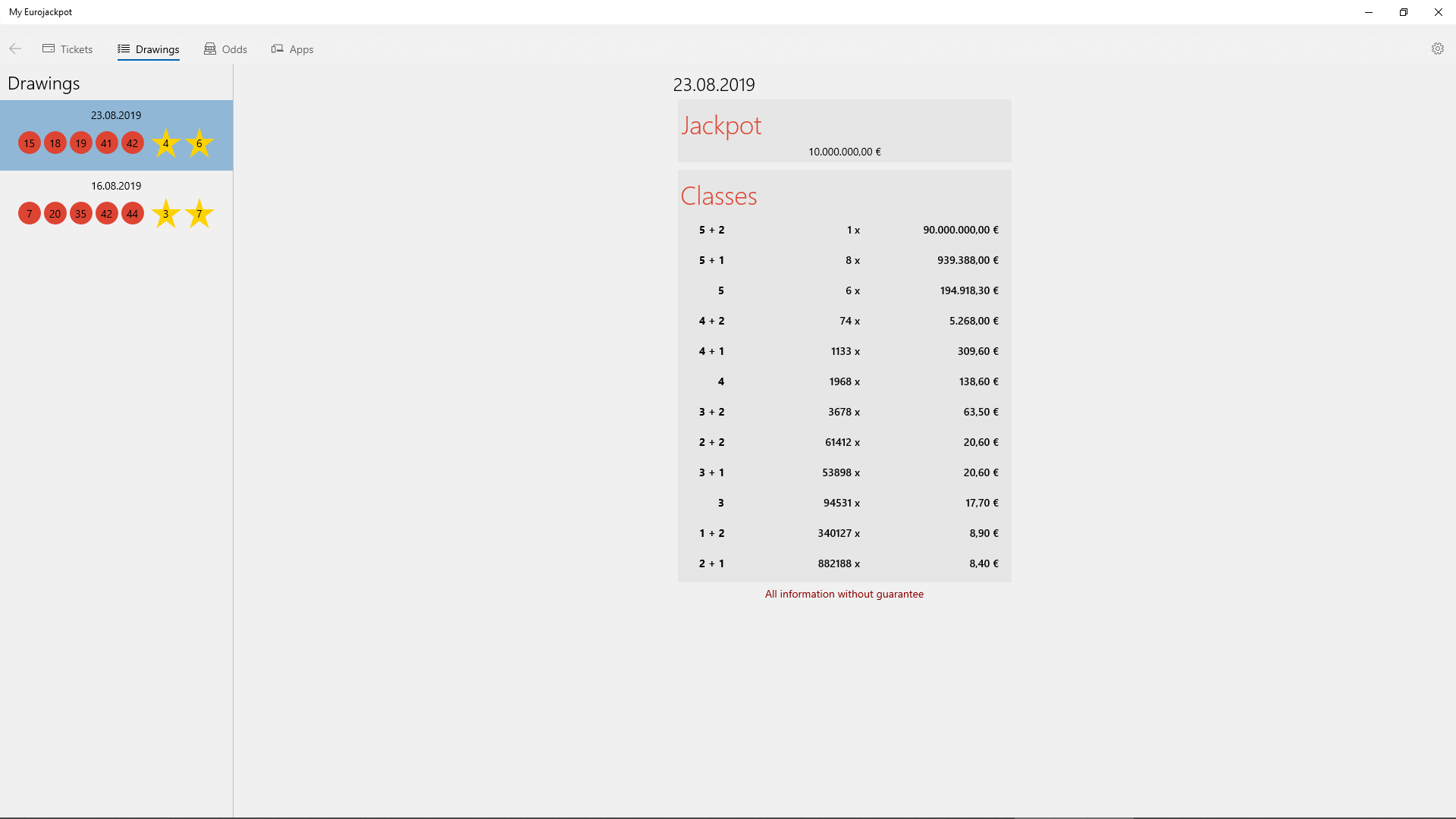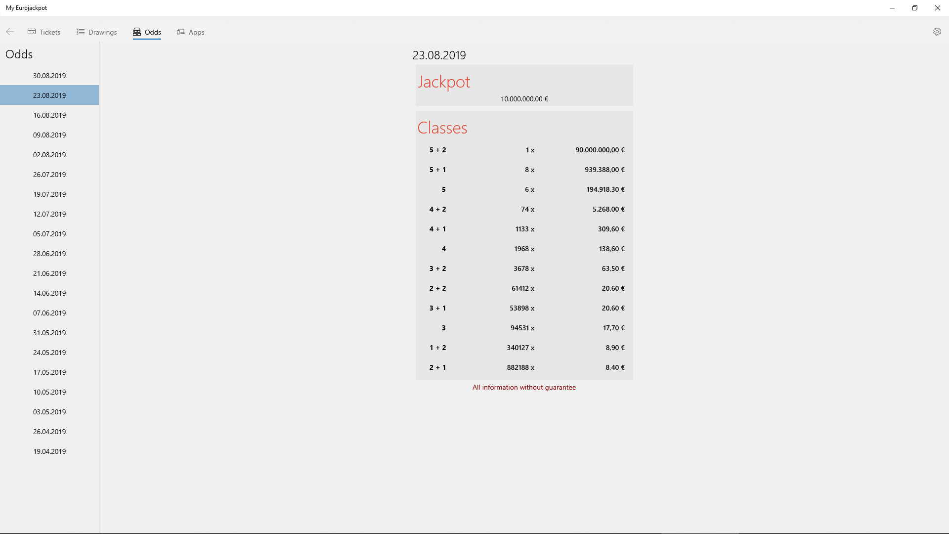EurojackpotOddsCalculates the profitDrawings