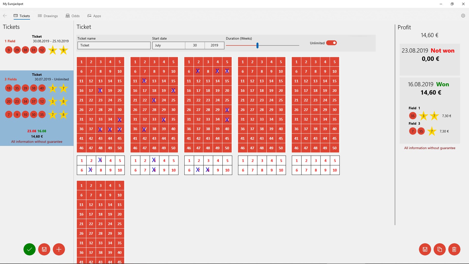 Enter all of your Eurojackpot lottery tickets and see what you have won.