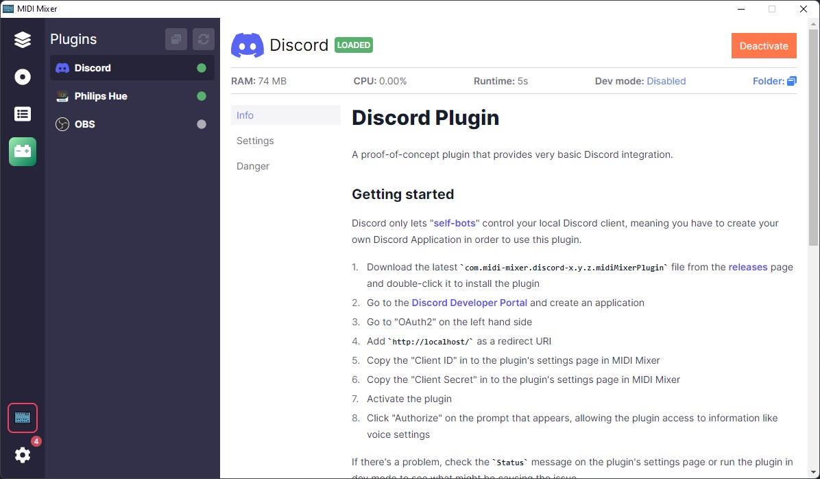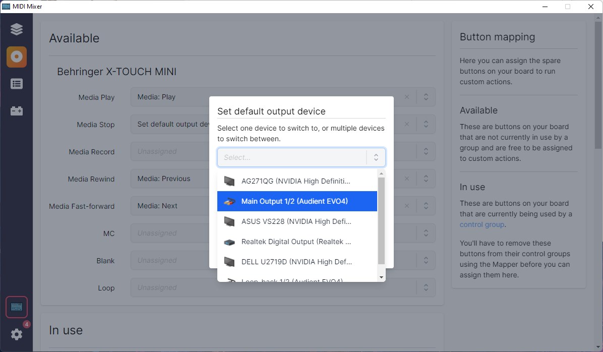Control audio levels of applications and devices with physical faders and rotariesIntegrate with other systems and apps (like Discord, Philips Hue, or OBS) using pluginsSharable profiles to support an ever-growing library of commercial and home-brew MIDI devicesLive on-screen display when changing volumesRun custom actions and call any file from a button pressSwitch or cycle your default audio device with a single button pressUse multiple MIDI devices at the same timeMIDI passthrough so you can use your device with another piece of software at the same time