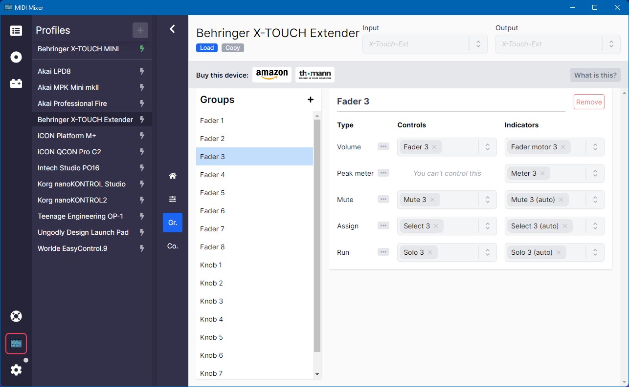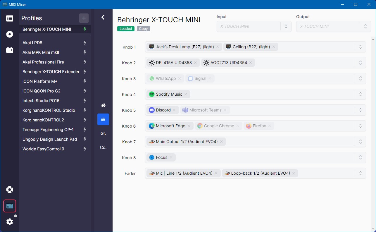 Change the volume of - or mute - any application or device on your system and use any MIDI controller to do it. Plug'n'play with built-in presets, or build your own profile and customise to your needs, supporting use-cases like cross-fading apps and homebrew devices.