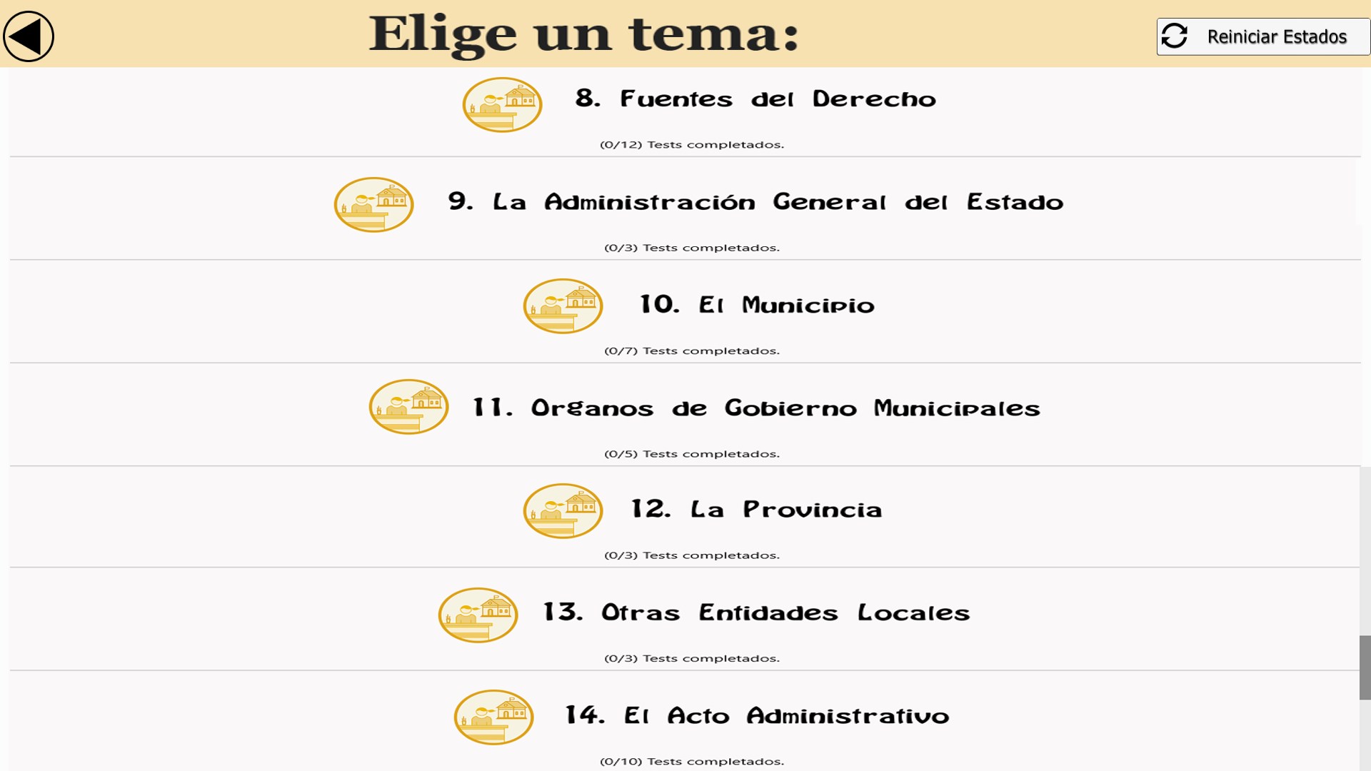 Nuestra aplicación está totalmente actualizada al nuevo temario, en el que se incluye los siguientes temas:
