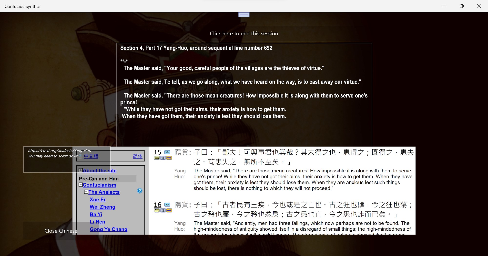 This Synthor contains the entire text of The Analects.
