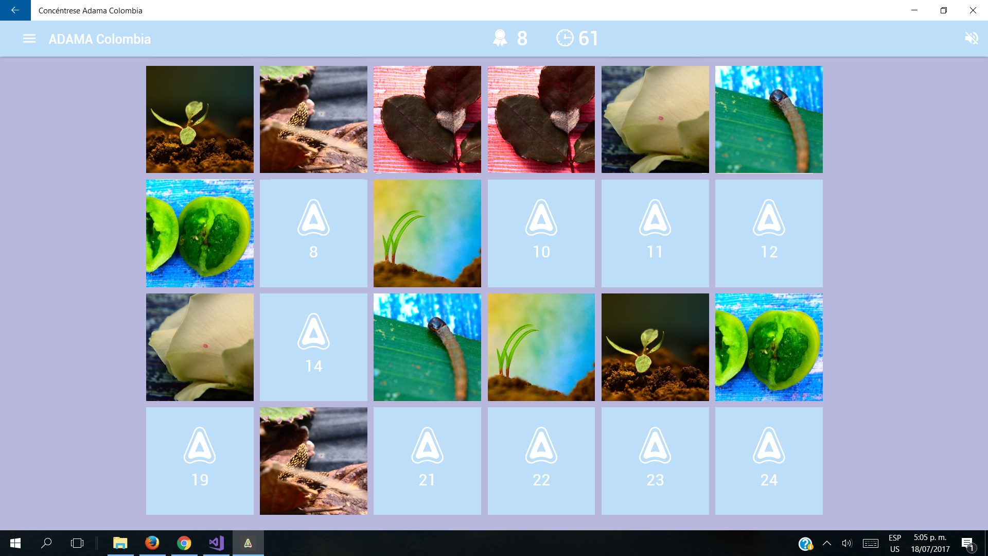Es un juego de memoria para encontrar su par, diviertete ejercitando tu memoria mediante figuras y fotos. Disfruta de diversos niveles y dificultades, apto para niƱos y adultos.