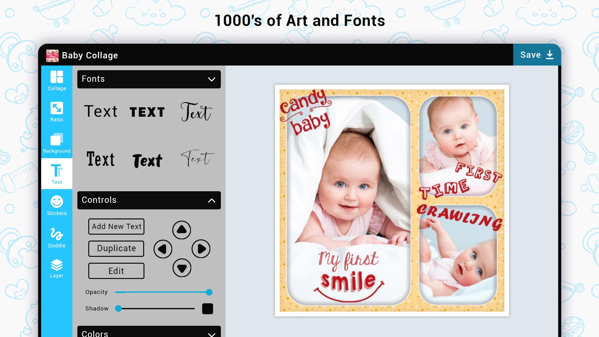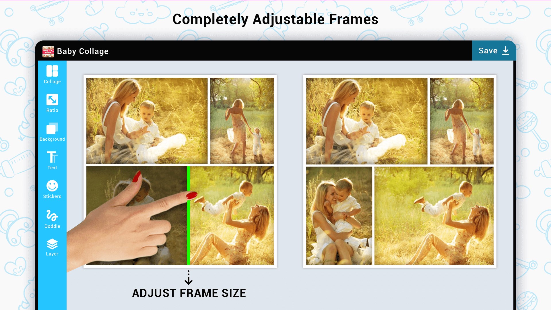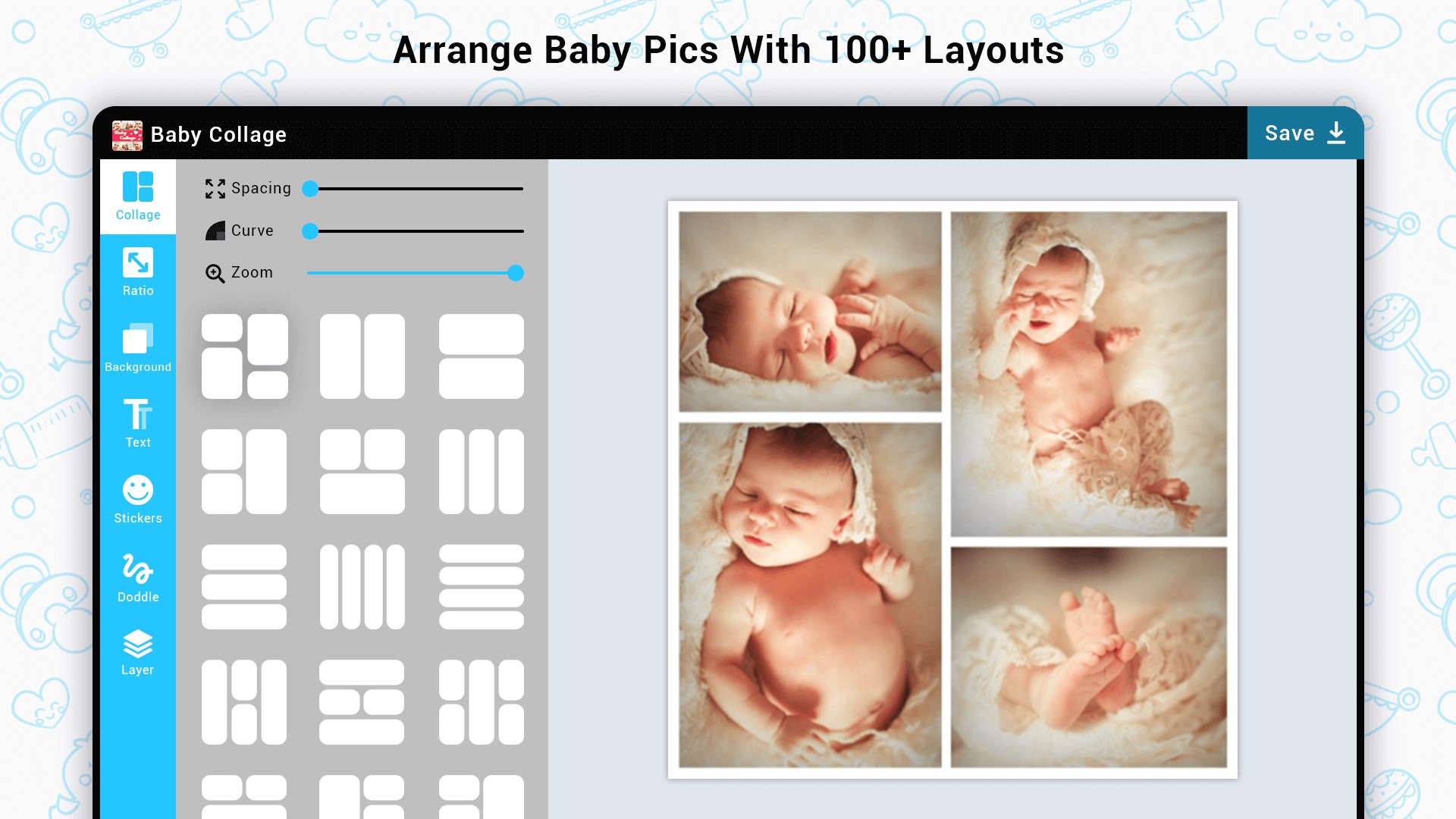 Baby Photo Collage comes with professional collage making features that allows you to create creative collages in just a few seconds.