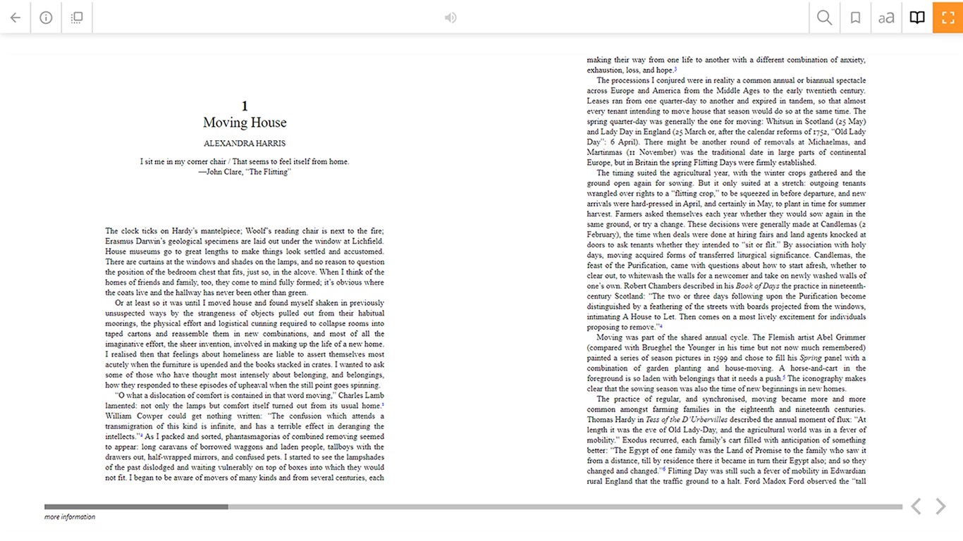 Audiobooks - download and store on your PCAudiobooks - play/pause and skip forward/backwardAudiobooks - listen in the background whilst browsing other appseBooks - download and store on your PCeBooks - page book-marking, opening the title at the right place when you pick upeBooks - change the font size, font face (including a dyslexic-friendy font), spacing and layout to suit your needs (depending on the features available in the eBook)eBooks - change the theme coloureBooks - display and navigate from the Table of Contents of the eBookeBooks - create and manage your own bookmarks within the texteBooks - read in either fullscreen view or window view